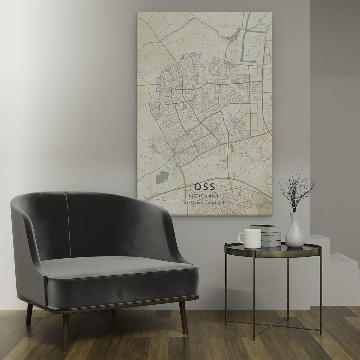 Schilderij Stadskaart Oss in Beige