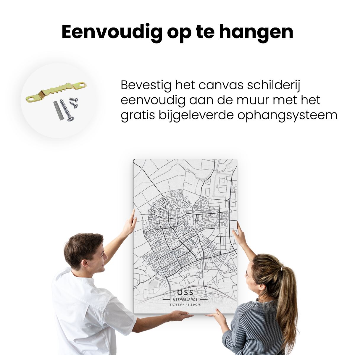 Bij aankoop ontvang je een meegeleverd ophangsysteem, zodat je op een simpele en snelle wijze het schilderij boven de bank of bed kan monteren.