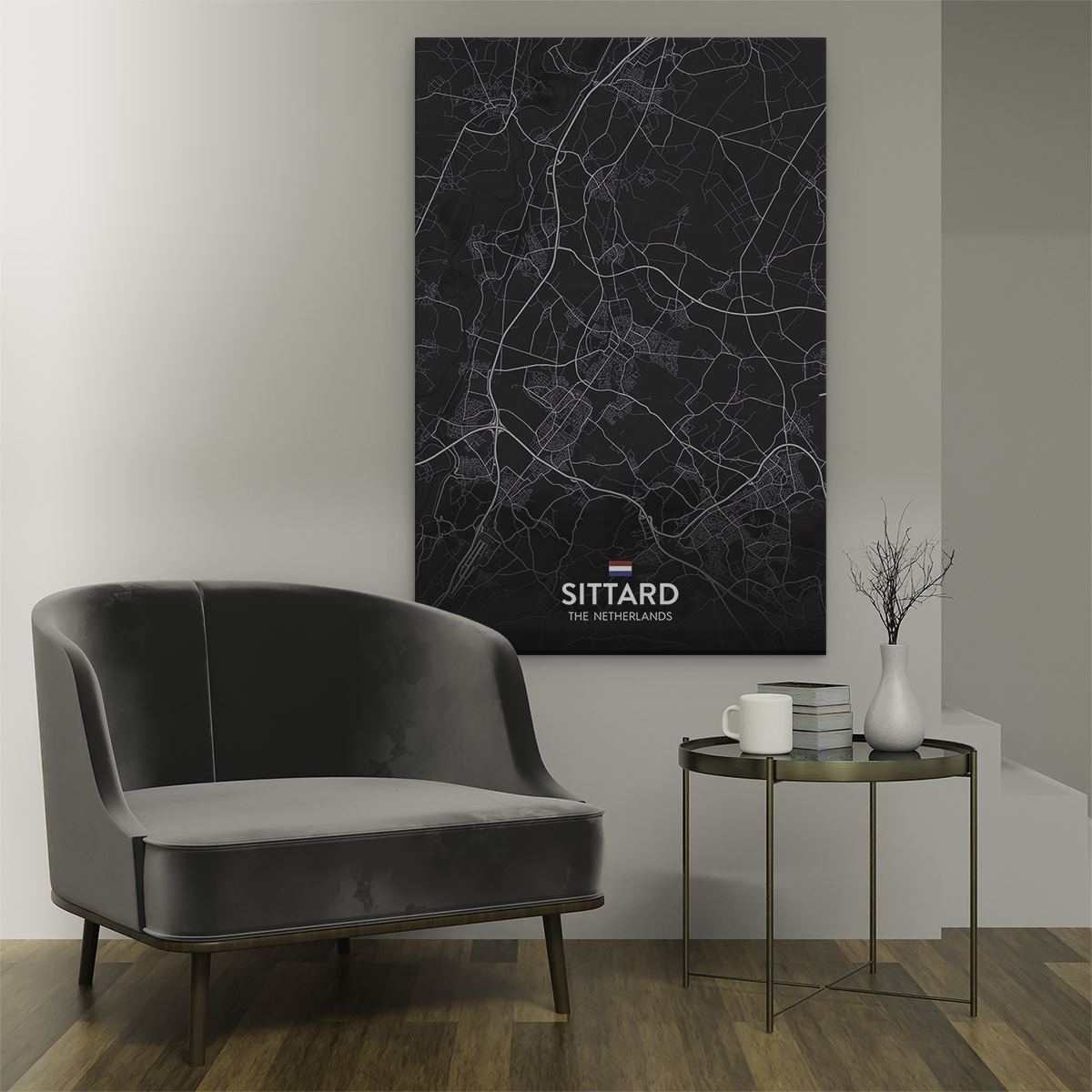 Schilderij Stadskaart Sittard in het Zwart