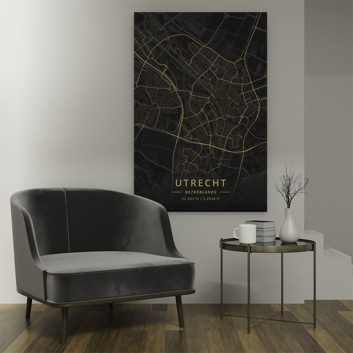 Schilderij Stadskaart Utrecht in het Goud en Zwart