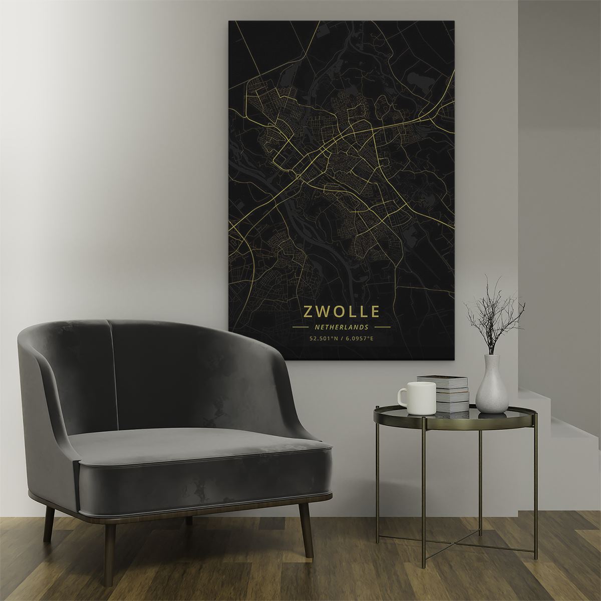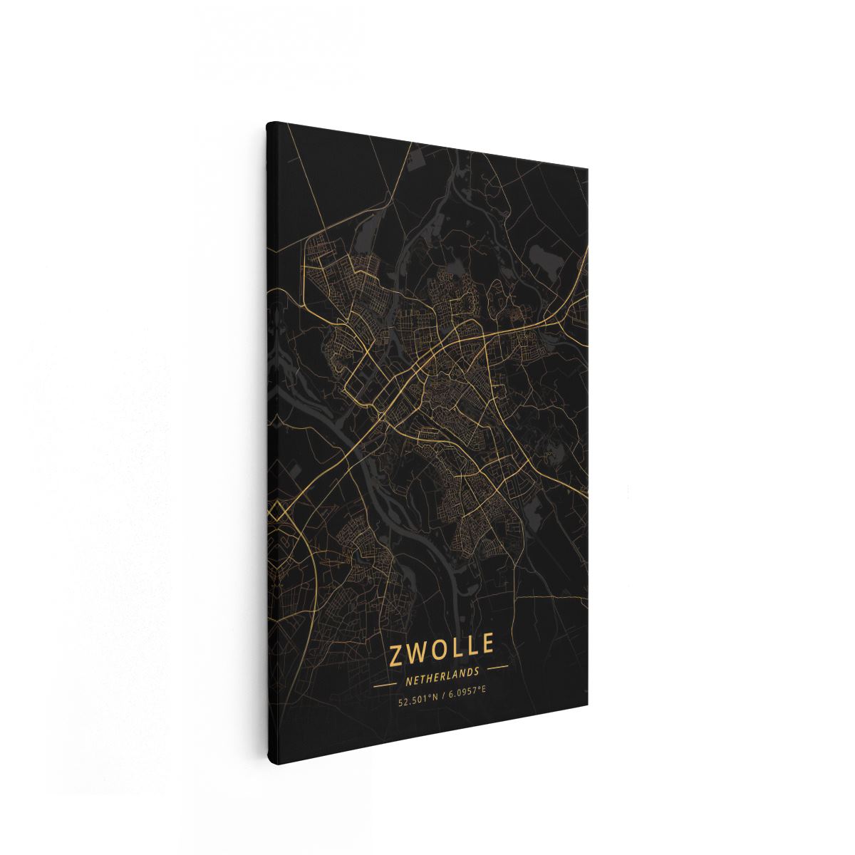 Schilderij Stadskaart Zwolle in het Goud en Zwart