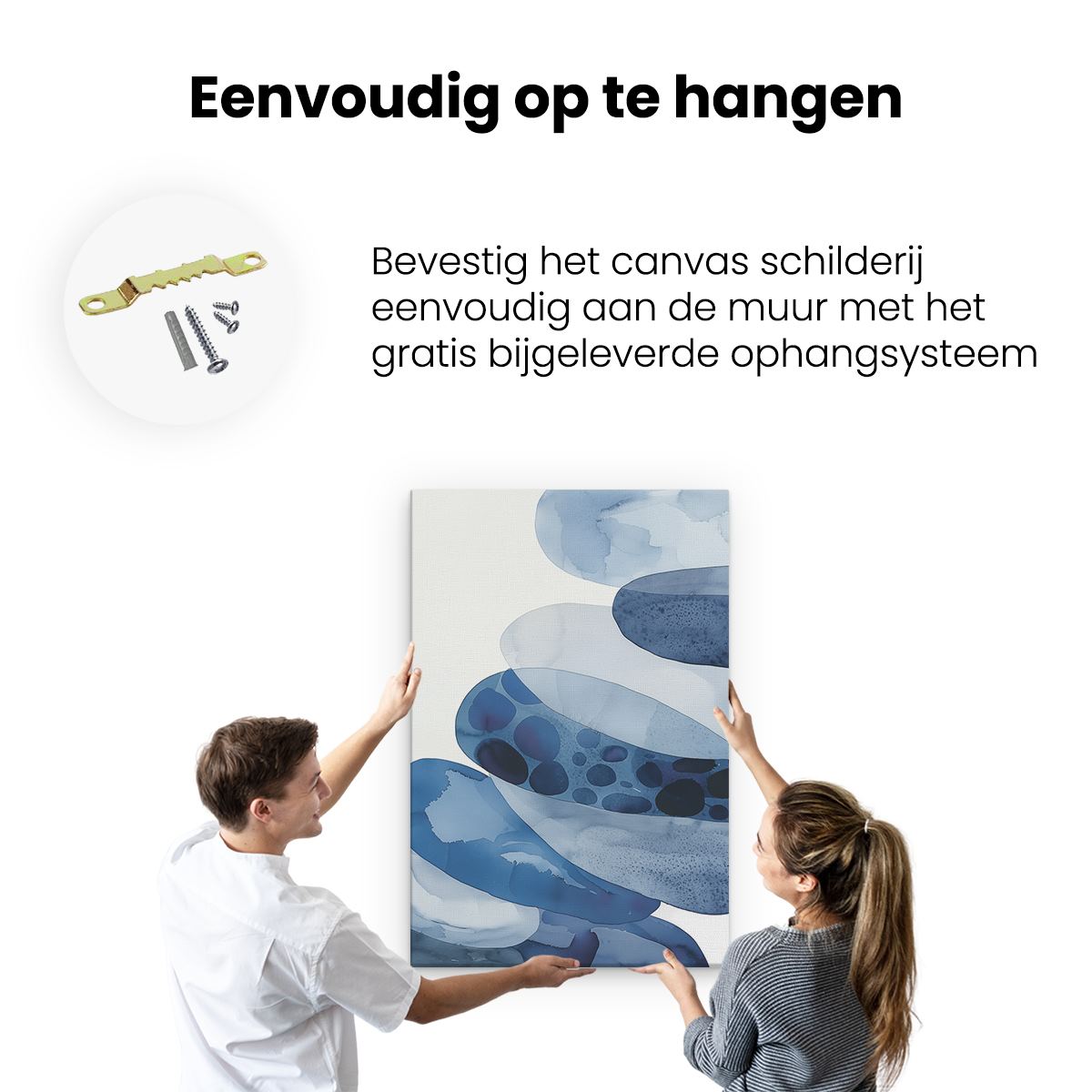 Bij aankoop ontvang je een meegeleverd ophangsysteem, zodat je op een simpele en snelle wijze het schilderij boven de bank of bed kan monteren.
