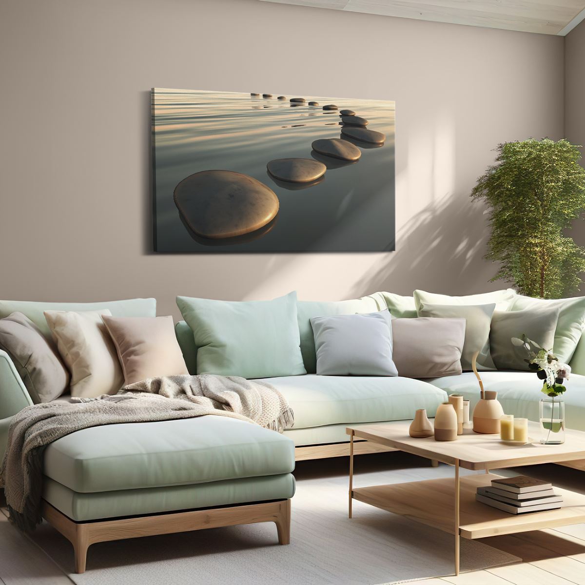Schilderij Stenen in Water