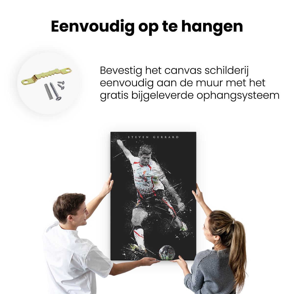 Bij aankoop ontvang je een meegeleverd ophangsysteem, zodat je op een simpele en snelle wijze het schilderij boven de bank of bed kan monteren.