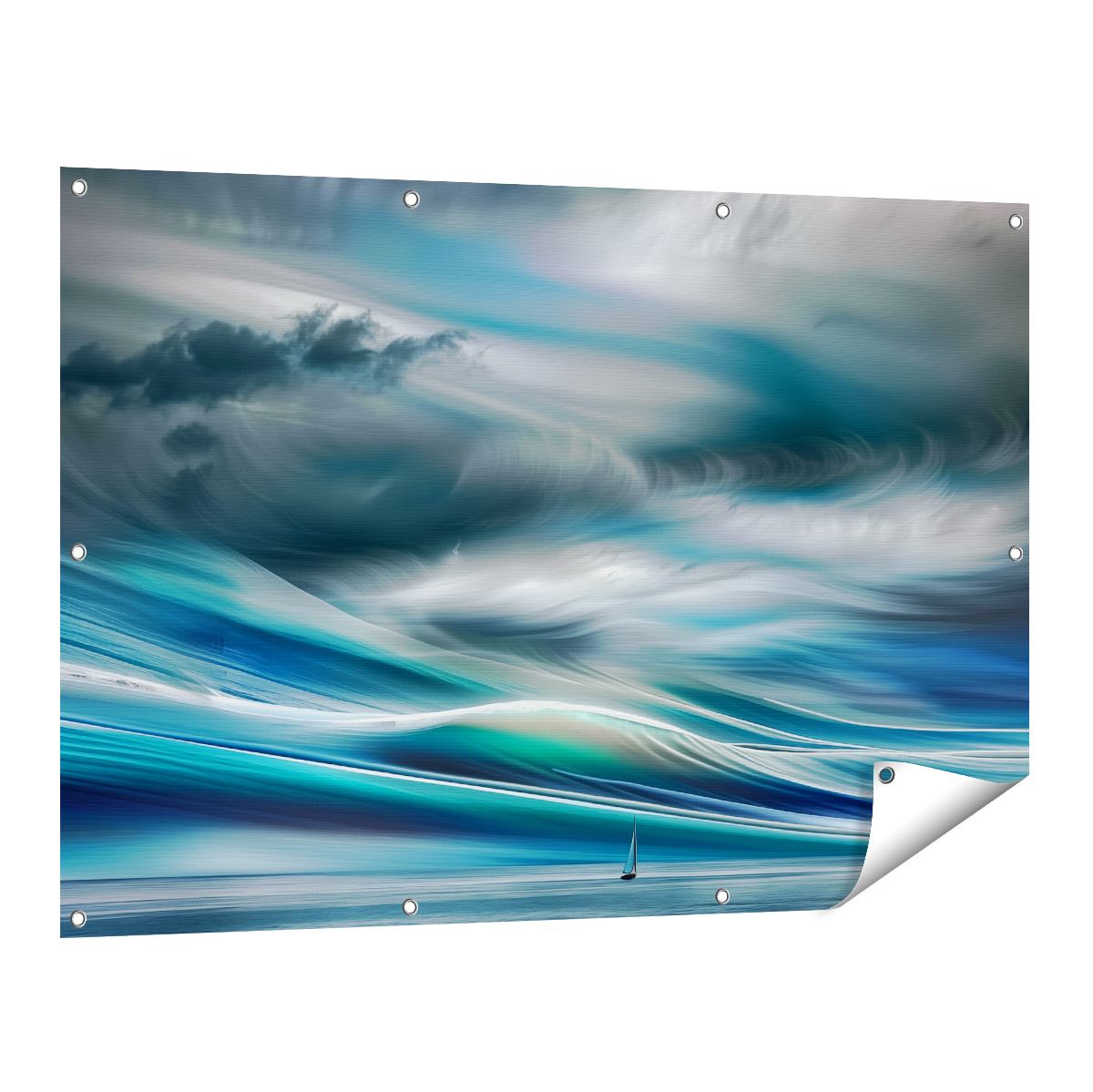 Tuinposter Stormachtige Lucht met een Zeilboot in het Water