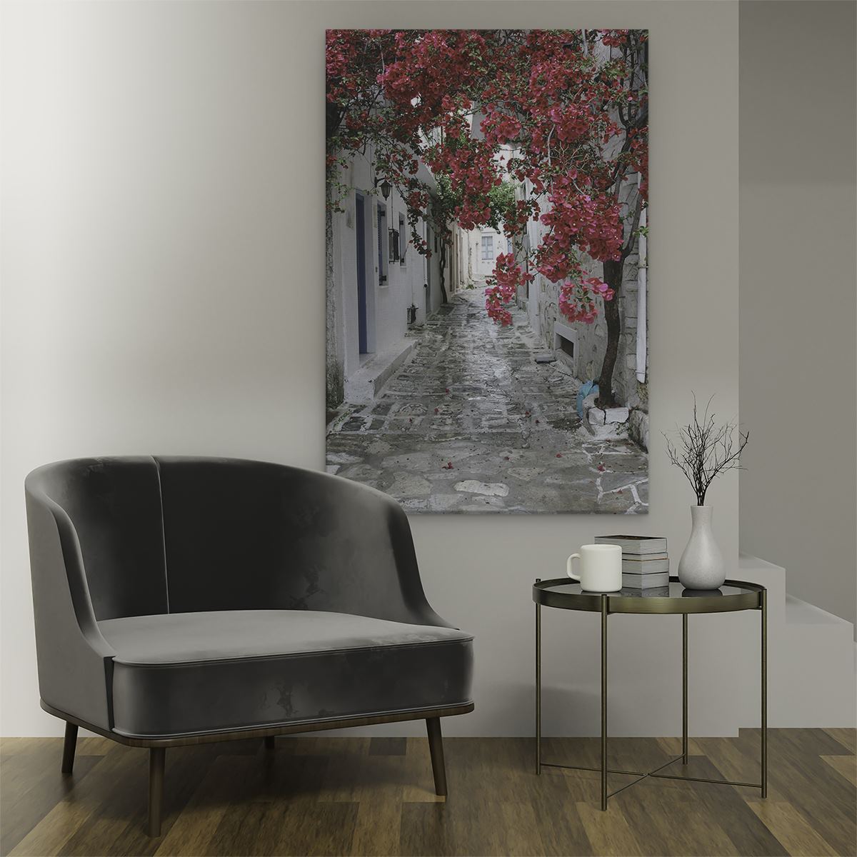 Schilderij Straatje met Bloemen