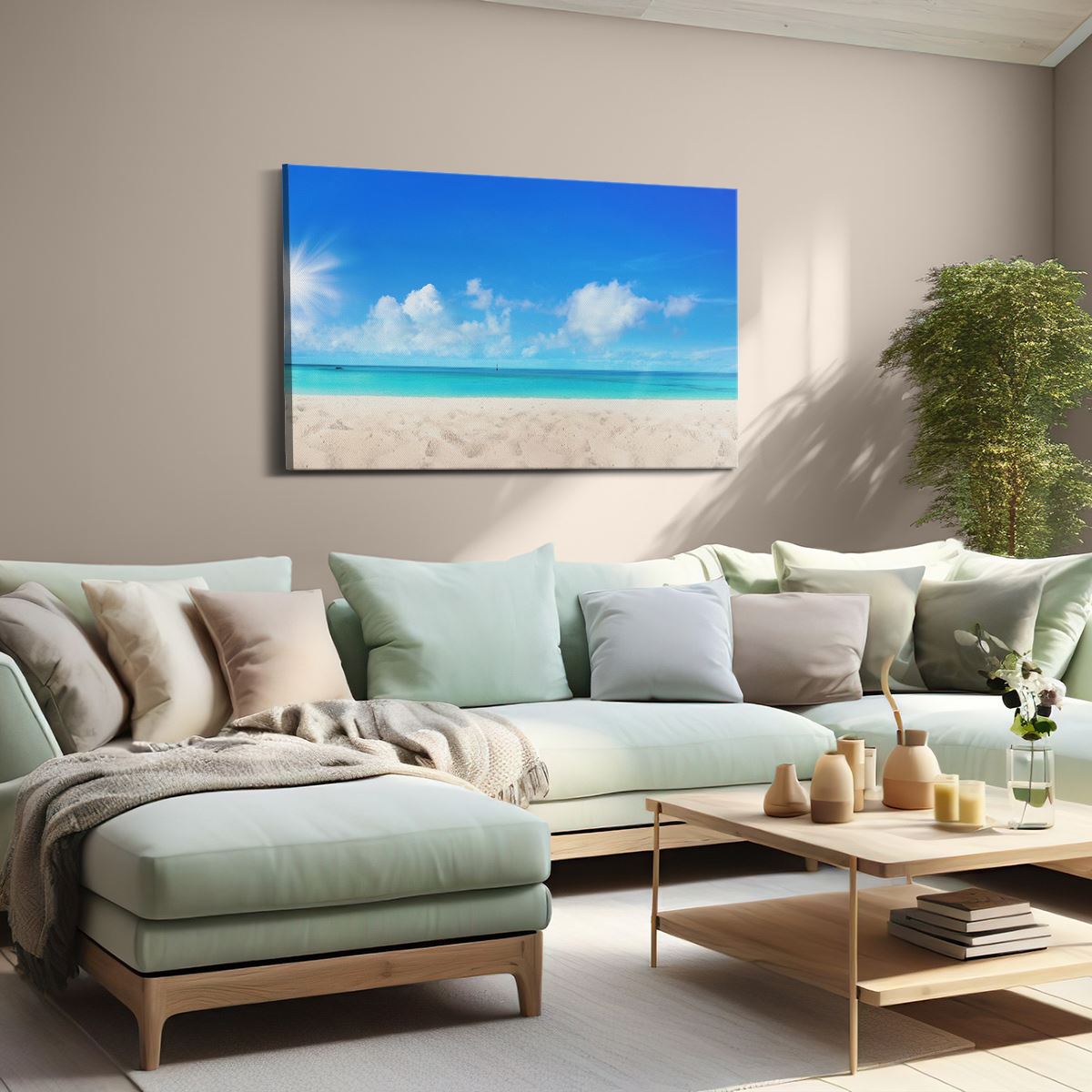 Schilderij Strand En Zee Met Helder Witte Zand