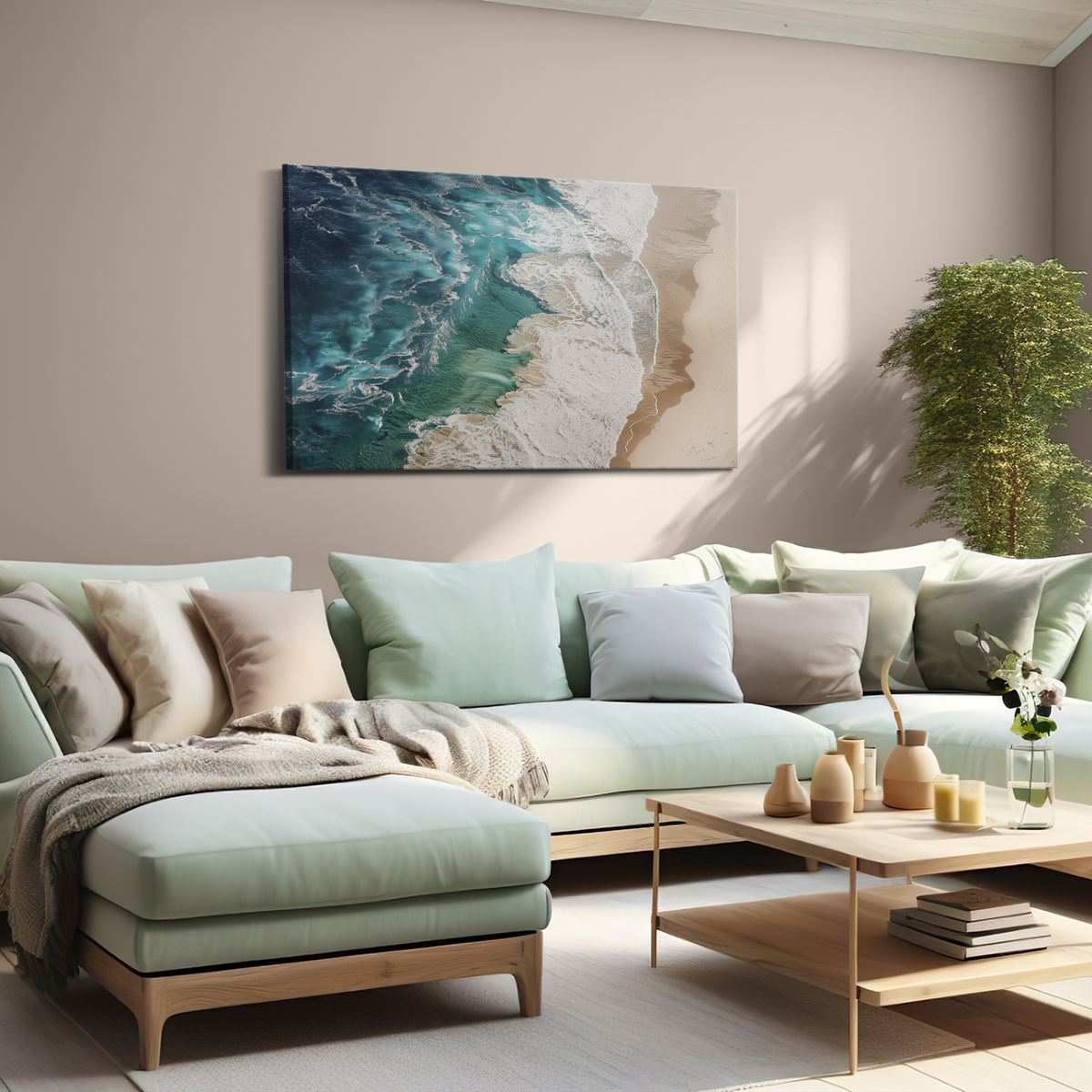 Canvas schilderij vooraanzicht Strand met Golven en Zand 30x20