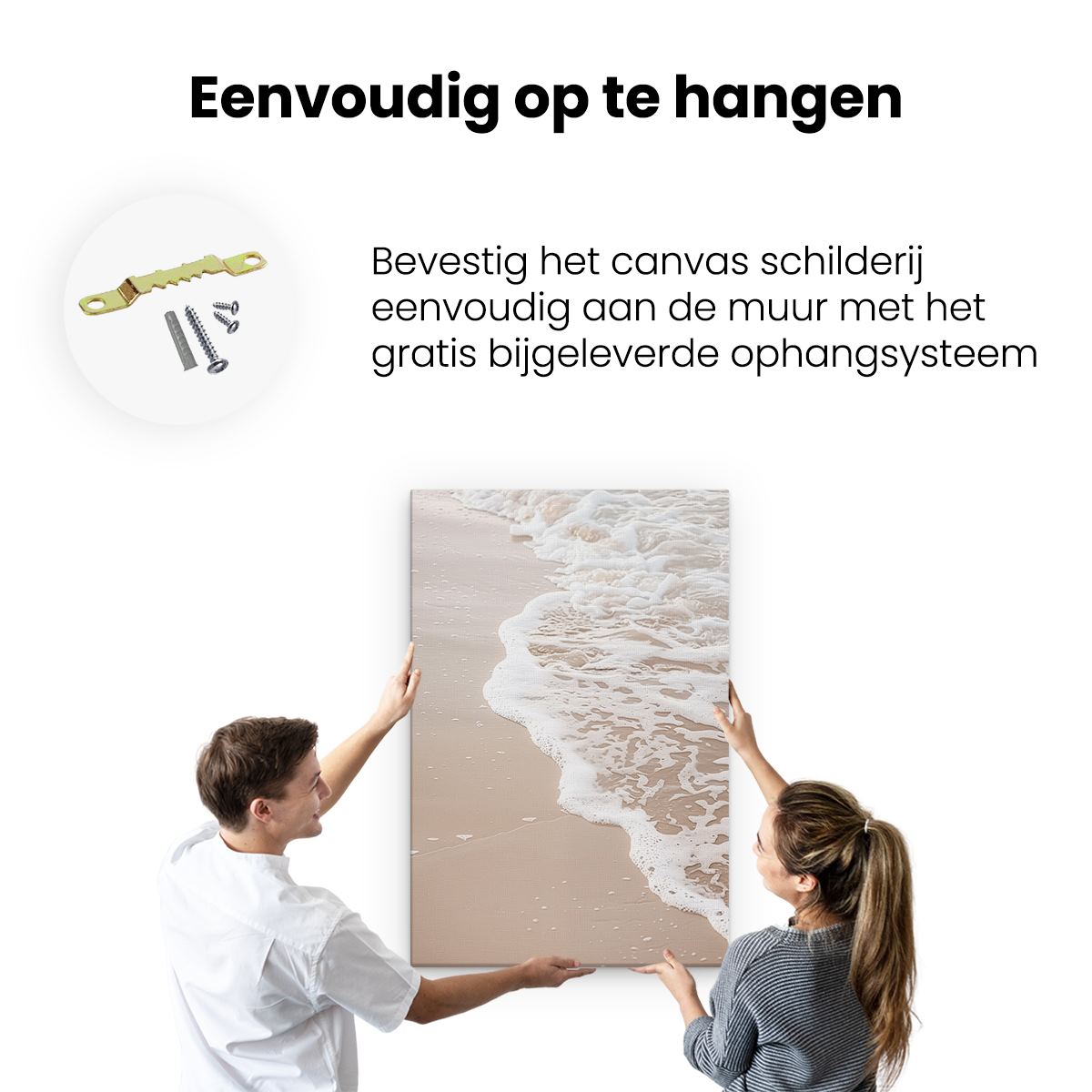 Bij aankoop ontvang je een meegeleverd ophangsysteem, zodat je op een simpele en snelle wijze het schilderij boven de bank of bed kan monteren.