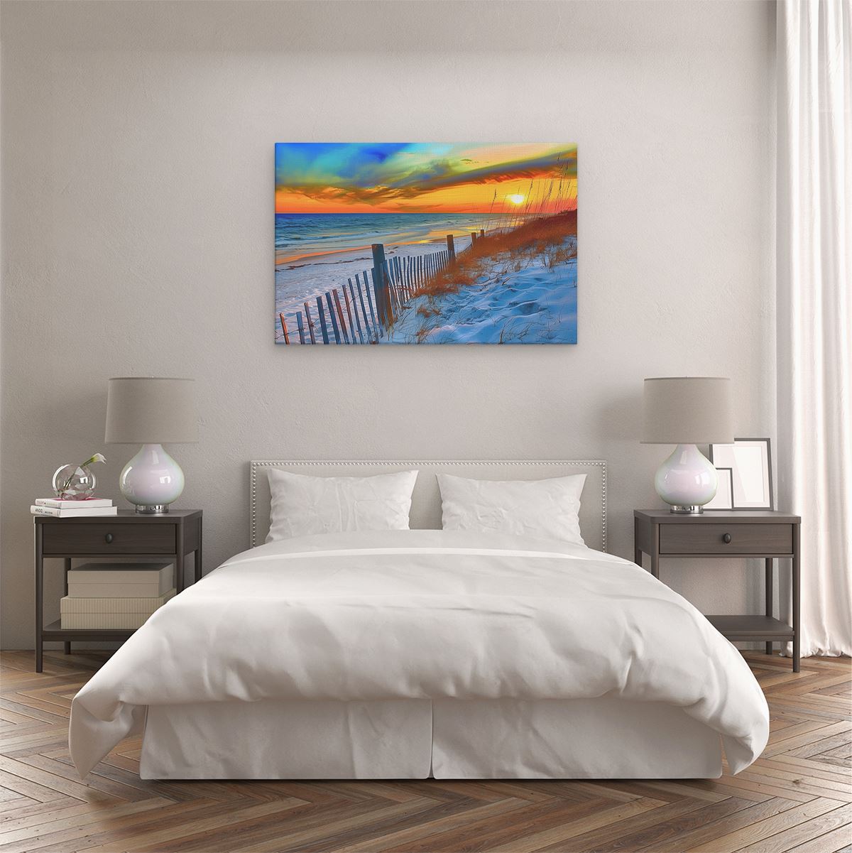 Bij aankoop ontvang je een meegeleverd ophangsysteem, zodat je op een simpele en snelle wijze het schilderij boven de bank of bed kan monteren.