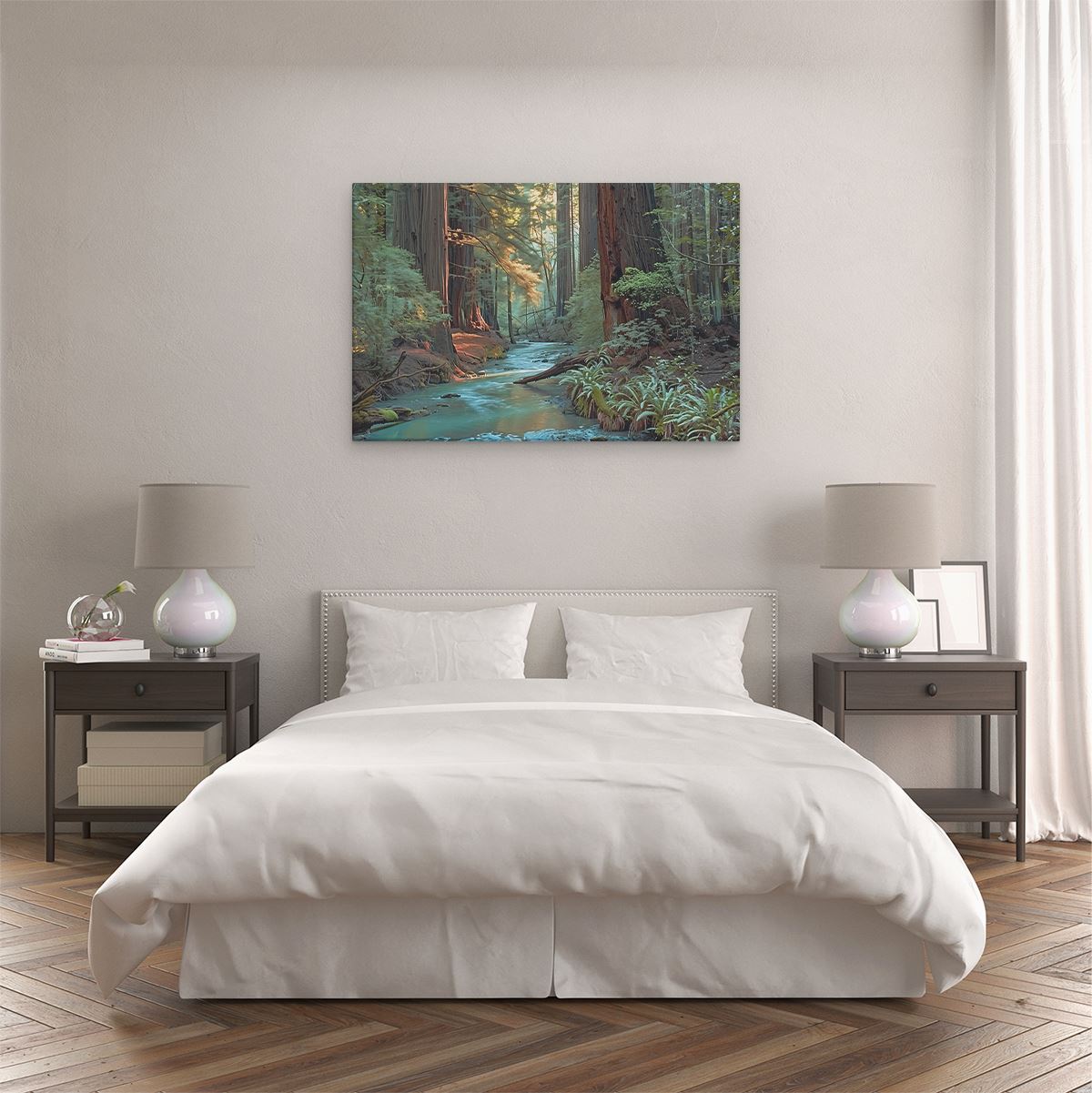 Schilderij Stroom loopt door de Sequoia's