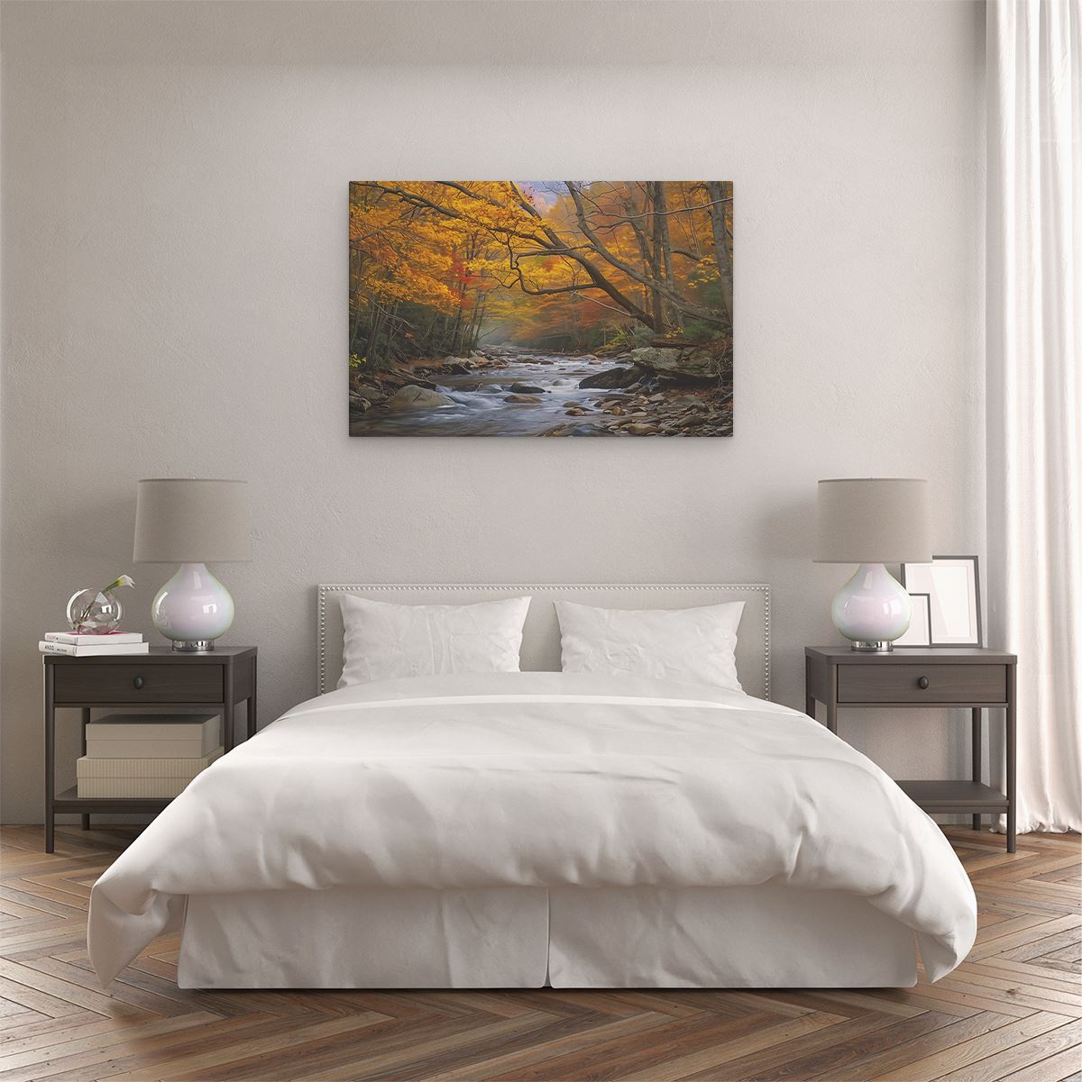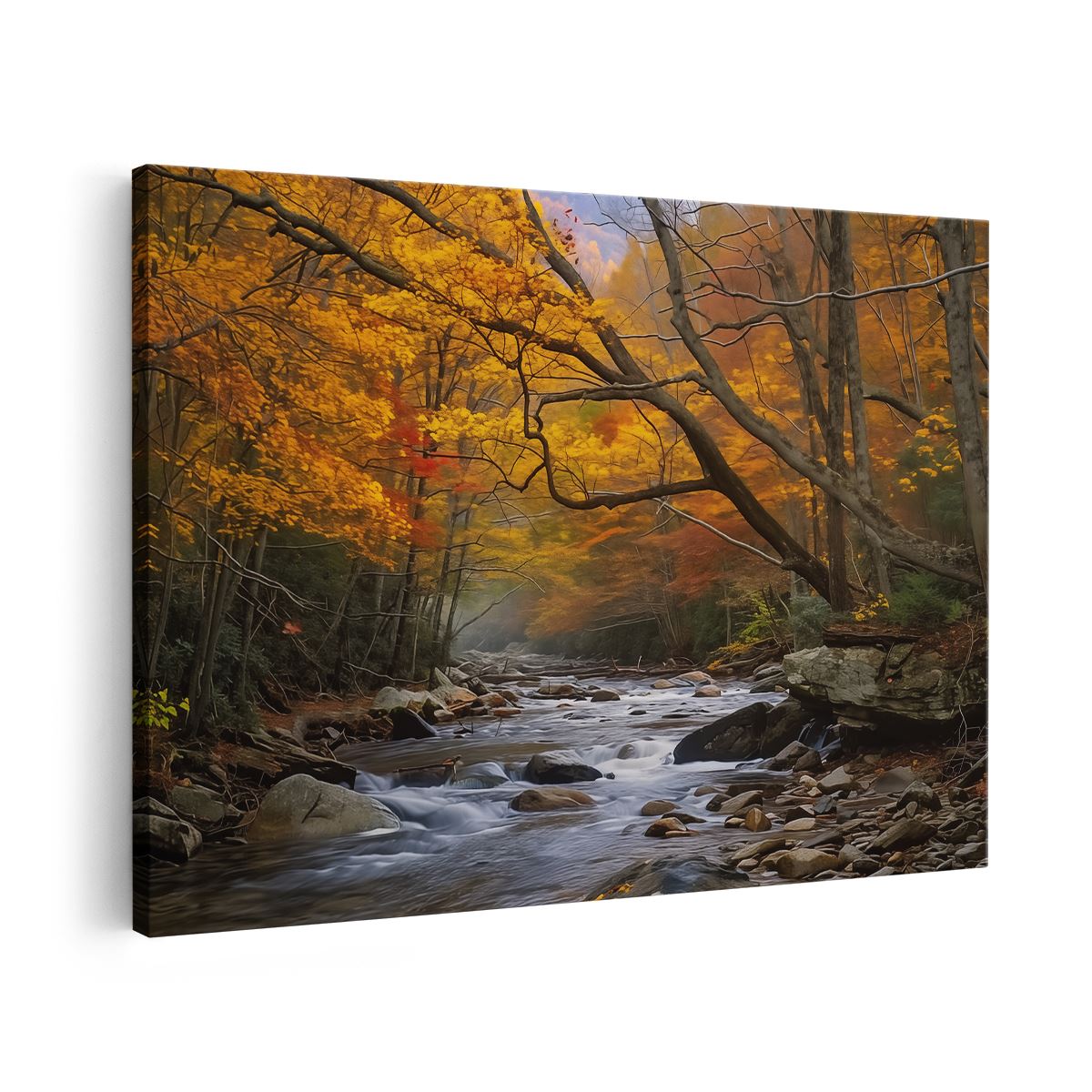 Schilderij Stroom Omgeven door Bomen in de Herfst