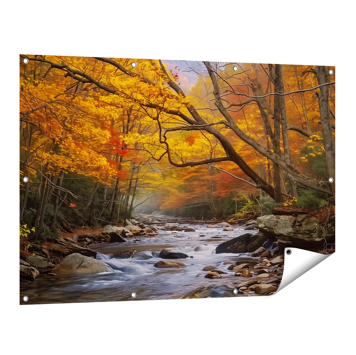 Tuinposter Stroom Omgeven door Bomen in de Herfst