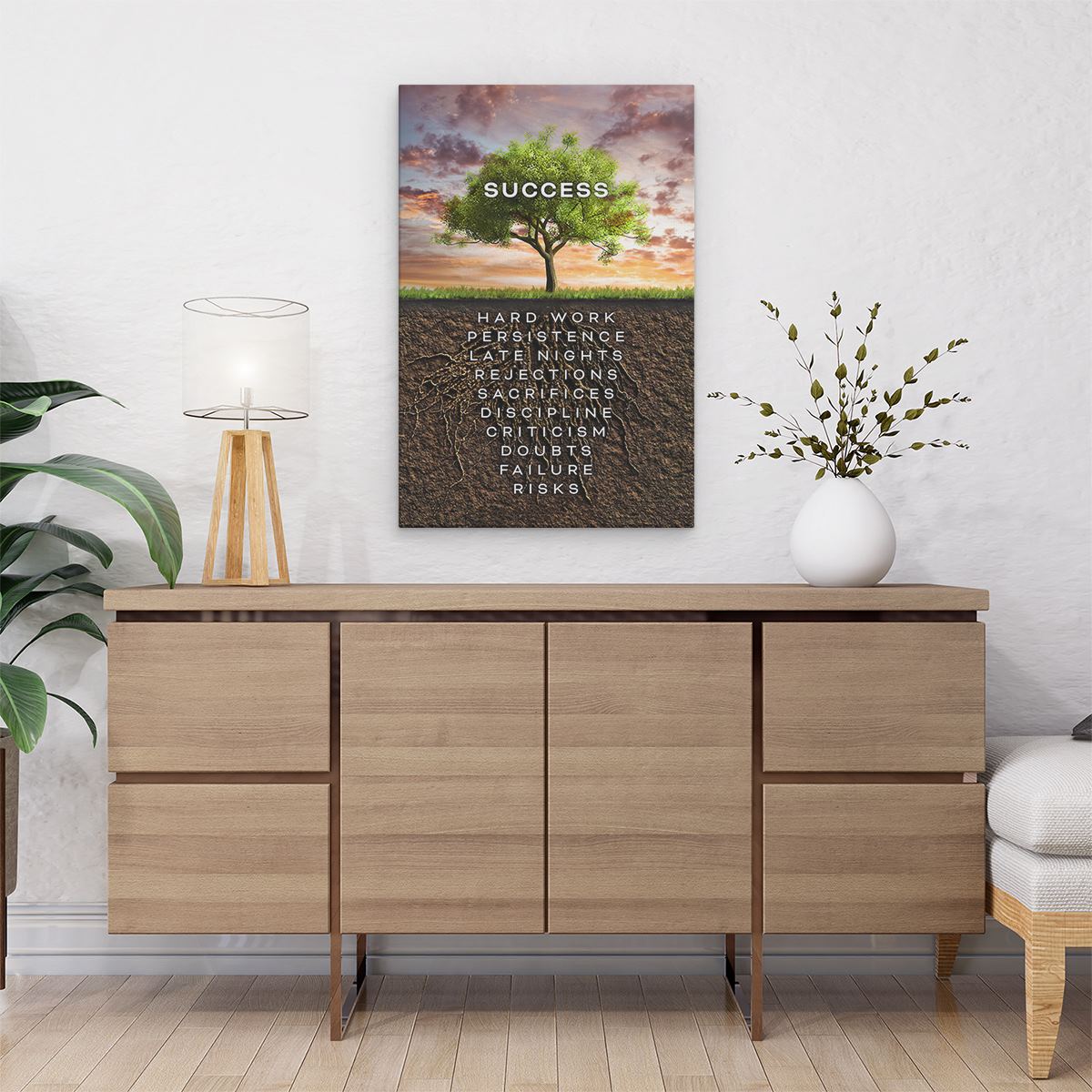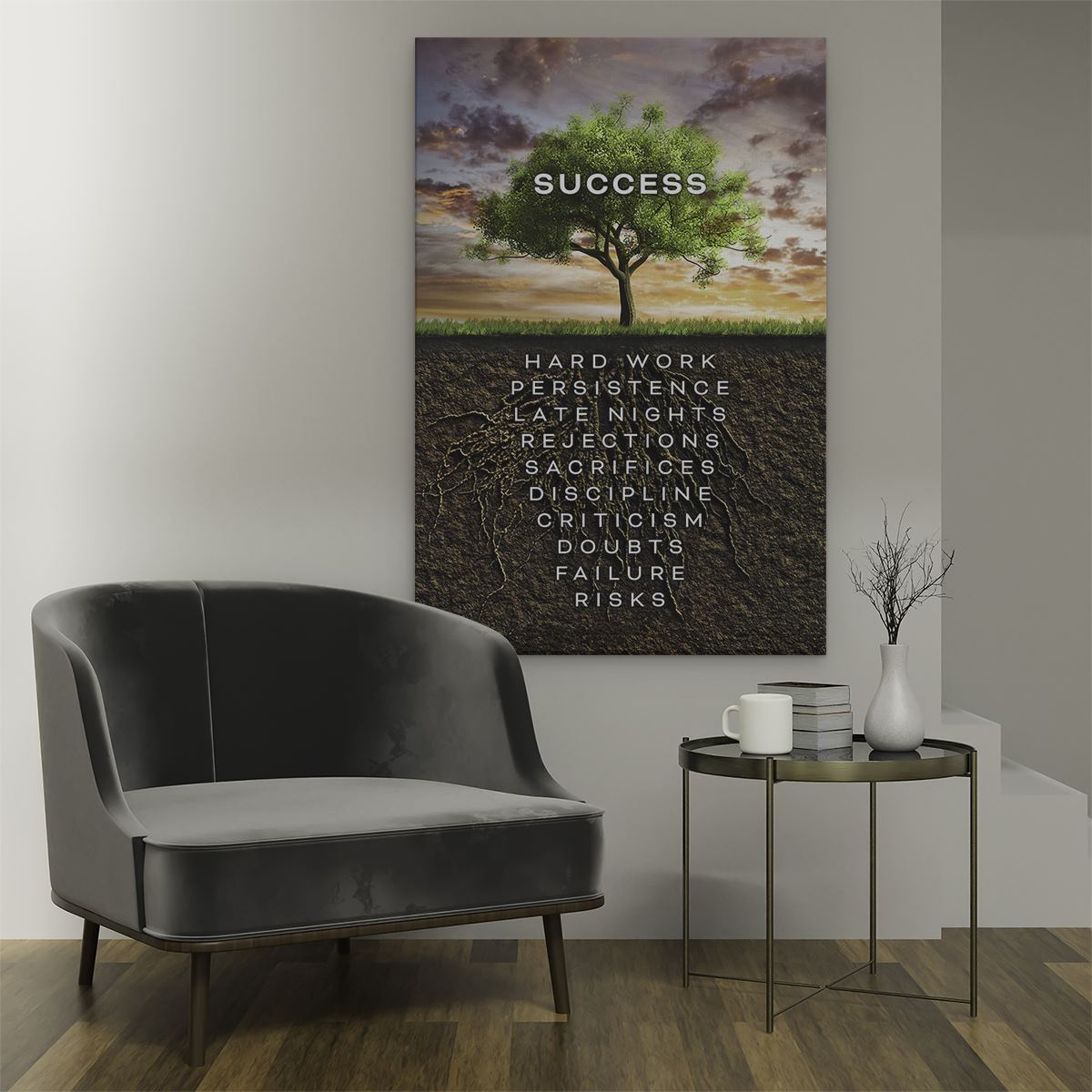 Schilderij Success Motivatie Tekst op een Boom - Motivatie