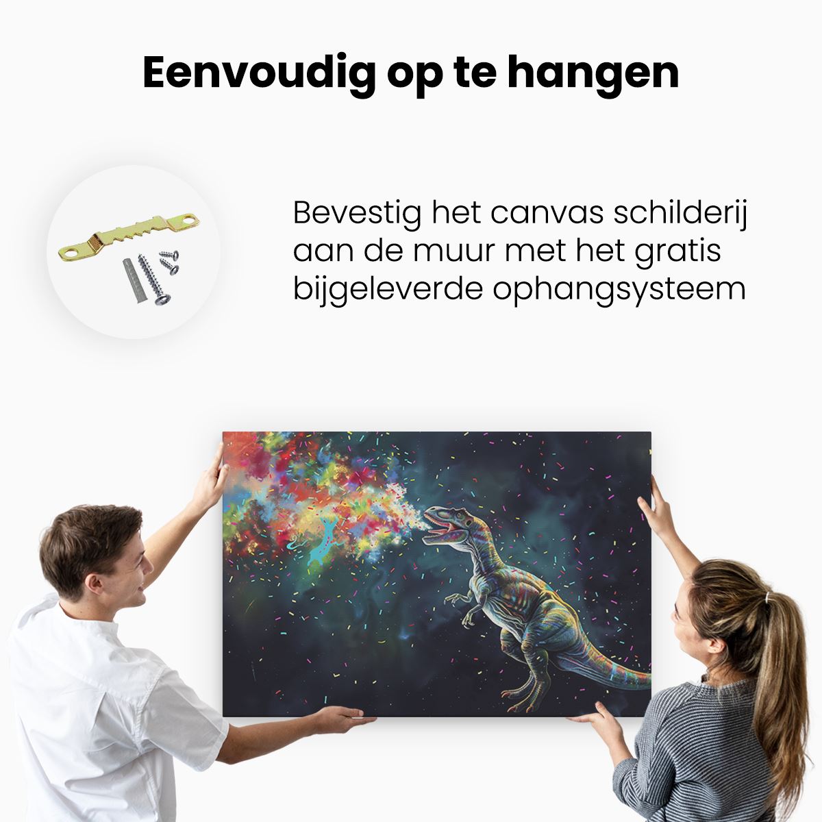 Bij aankoop ontvang je een meegeleverd ophangsysteem, zodat je op een simpele en snelle wijze het schilderij boven de bank of bed kan monteren.