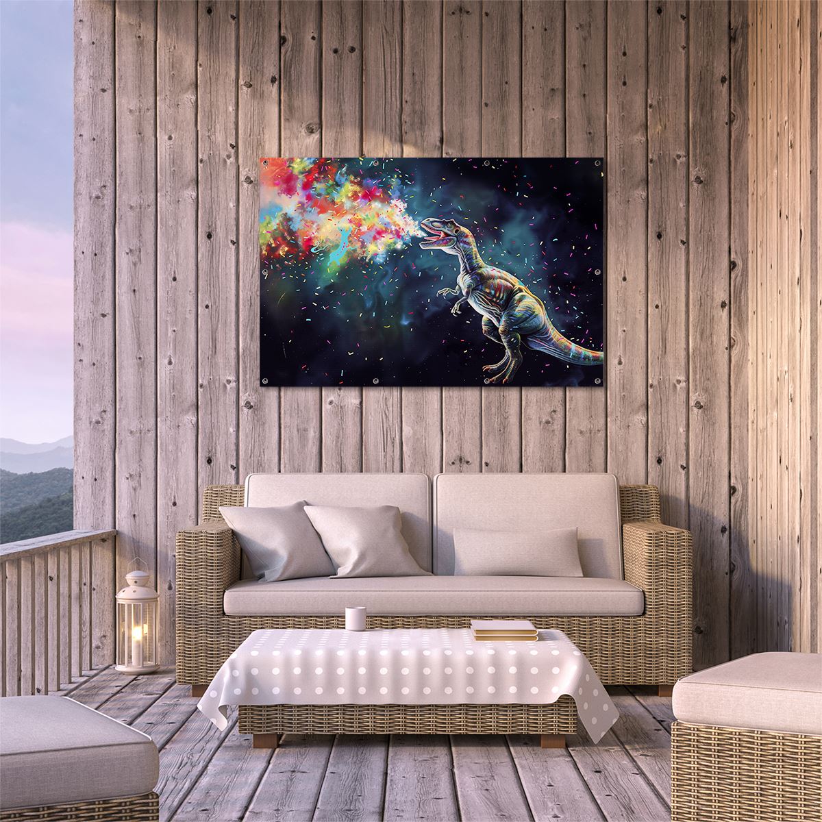 Tuinposter T - Rex Blaast Kleurrijke Confetti