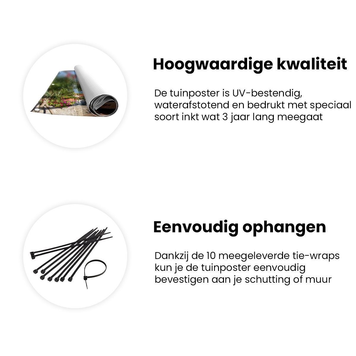 Bij aankoop ontvang je een meegeleverd ophangsysteem, zodat je op een simpele en snelle wijze de tuinposter kan ophangen.