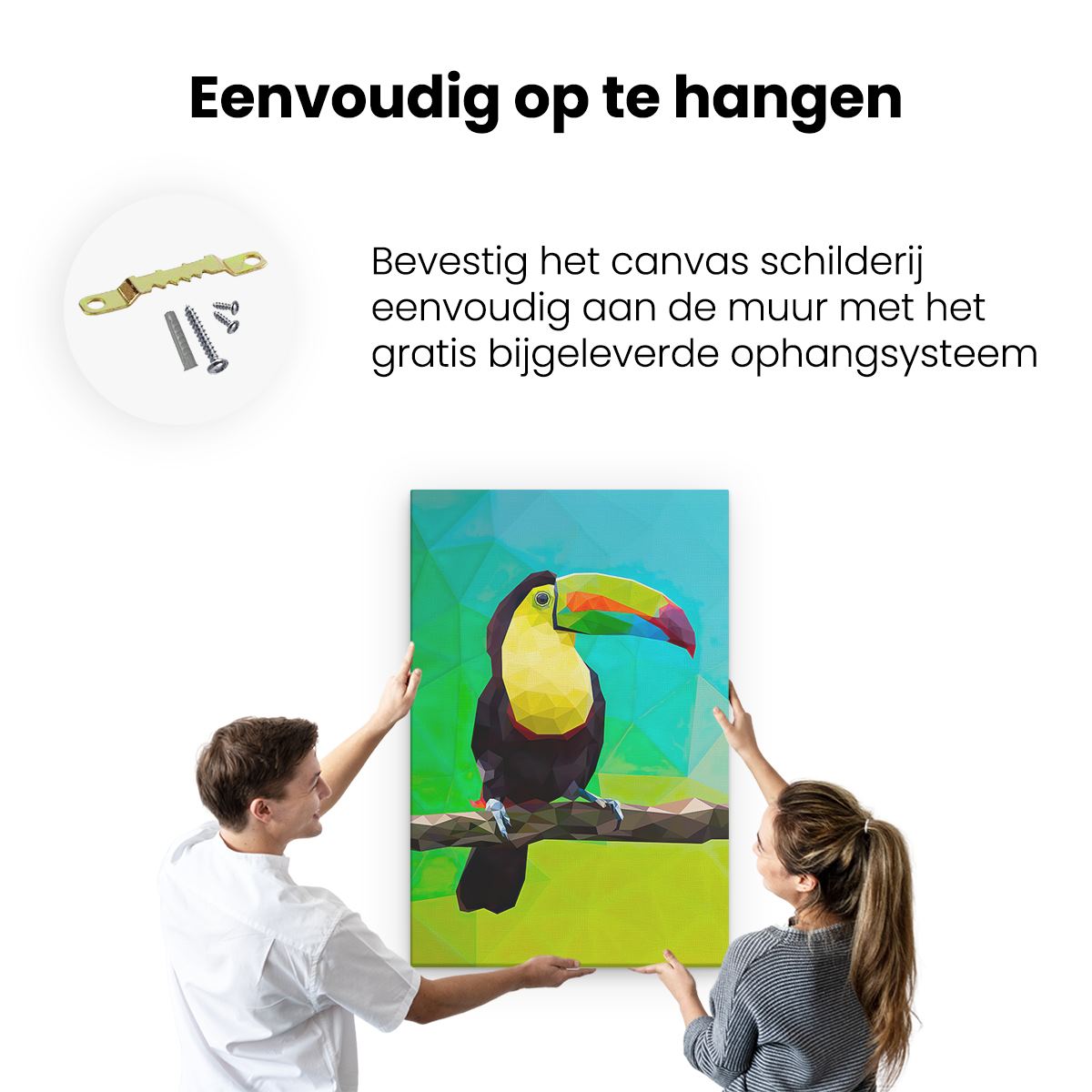 Bij aankoop ontvang je een meegeleverd ophangsysteem, zodat je op een simpele en snelle wijze het schilderij boven de bank of bed kan monteren.