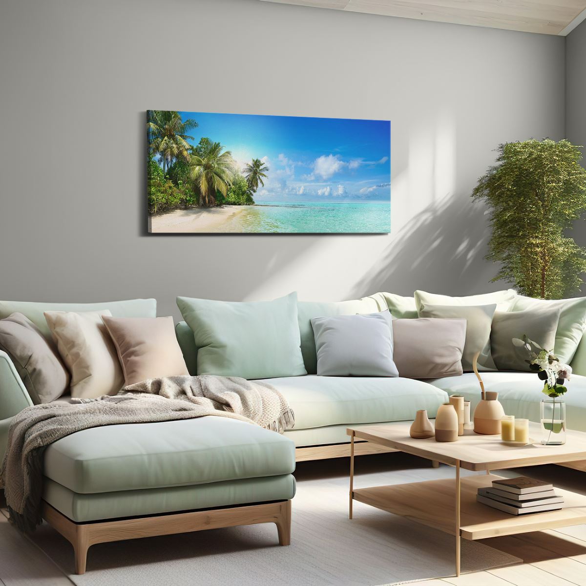 Schilderij Tropisch Strand Bij De Licht Blauwe Zee