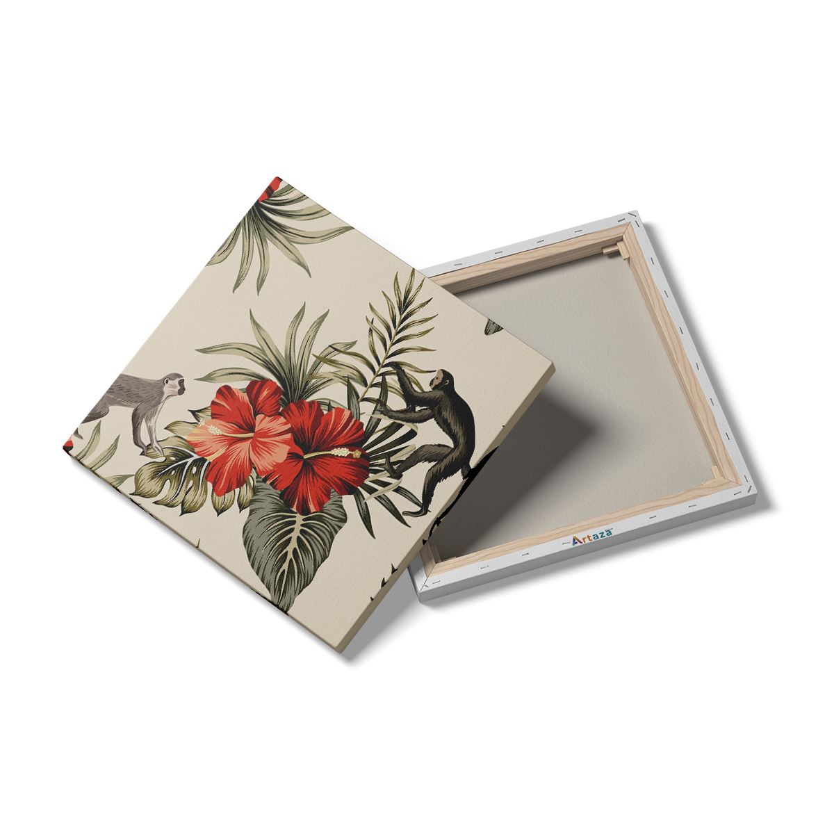 Schilderij Tropische Bloemen Met Apen Achtergrond