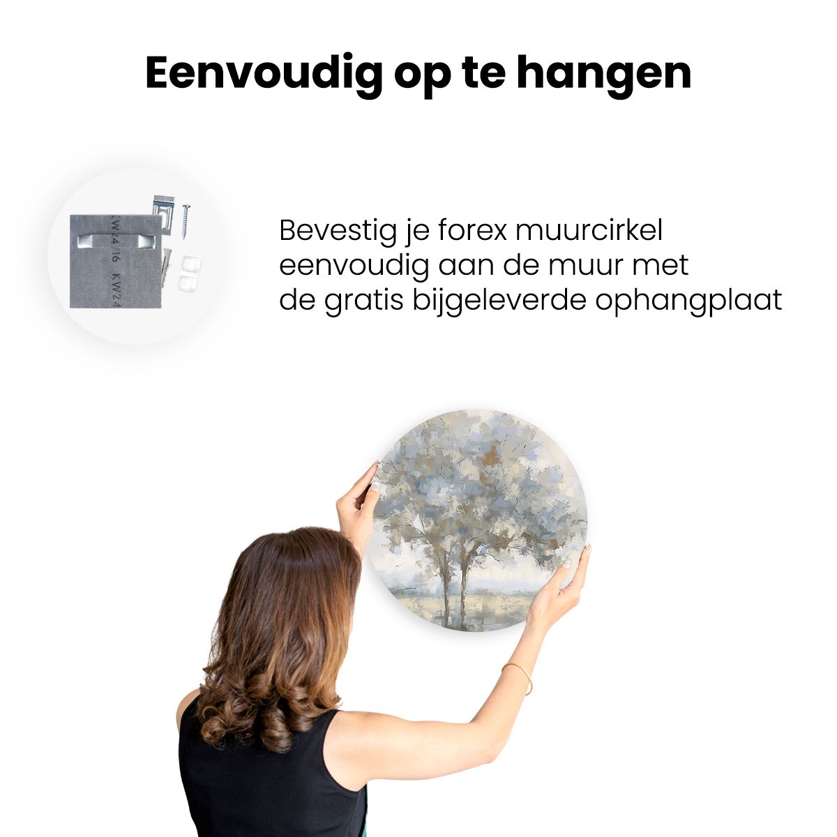 Gebruik het meegeleverde bevestigingsmateriaal om de wandcirkel aan de meeste wanden om te kunnen hangen. Een schroef en plug leveren we mee.