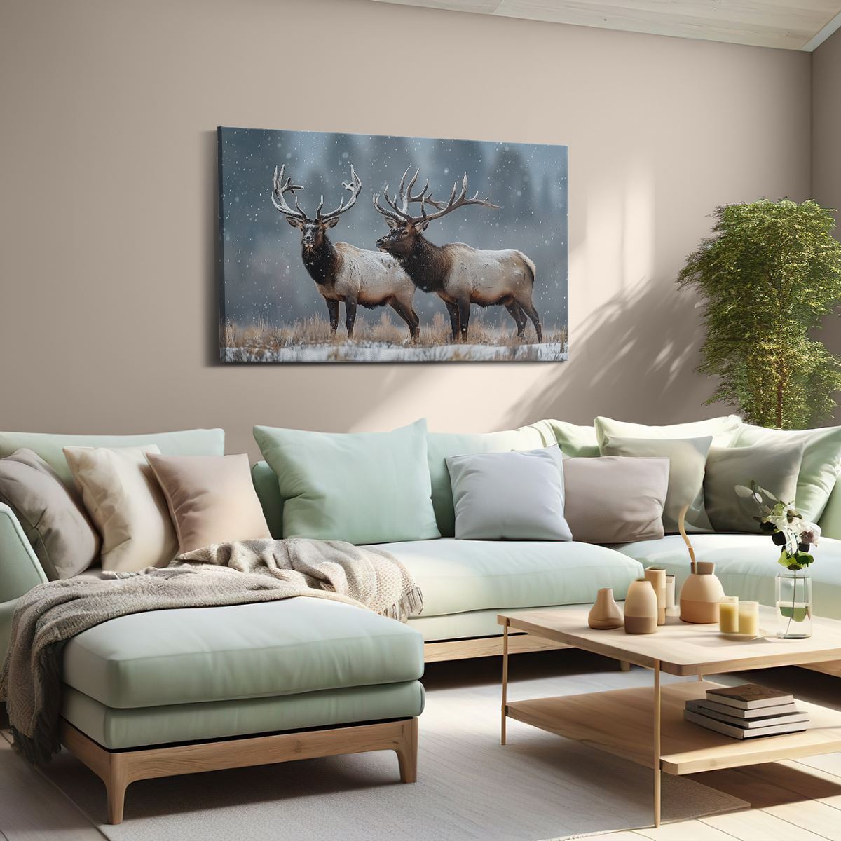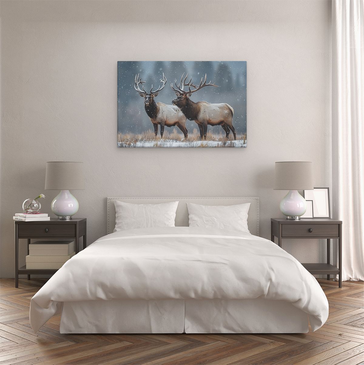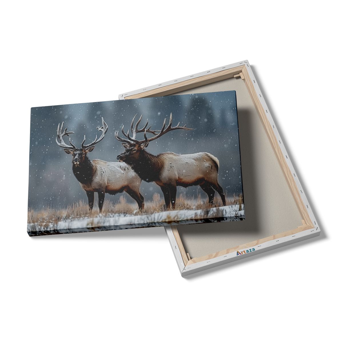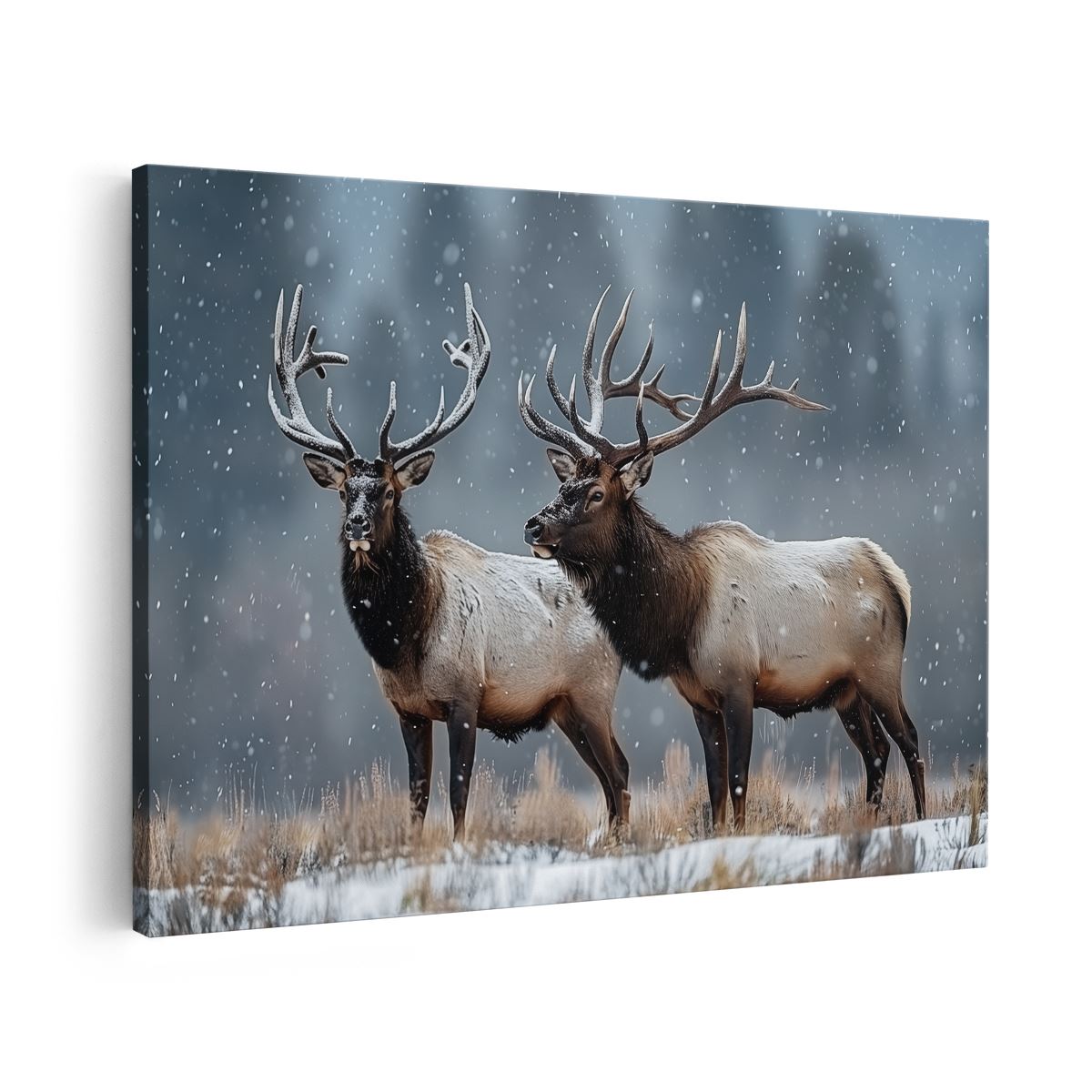 Schilderij Twee Elanden Staan In de Sneeuw