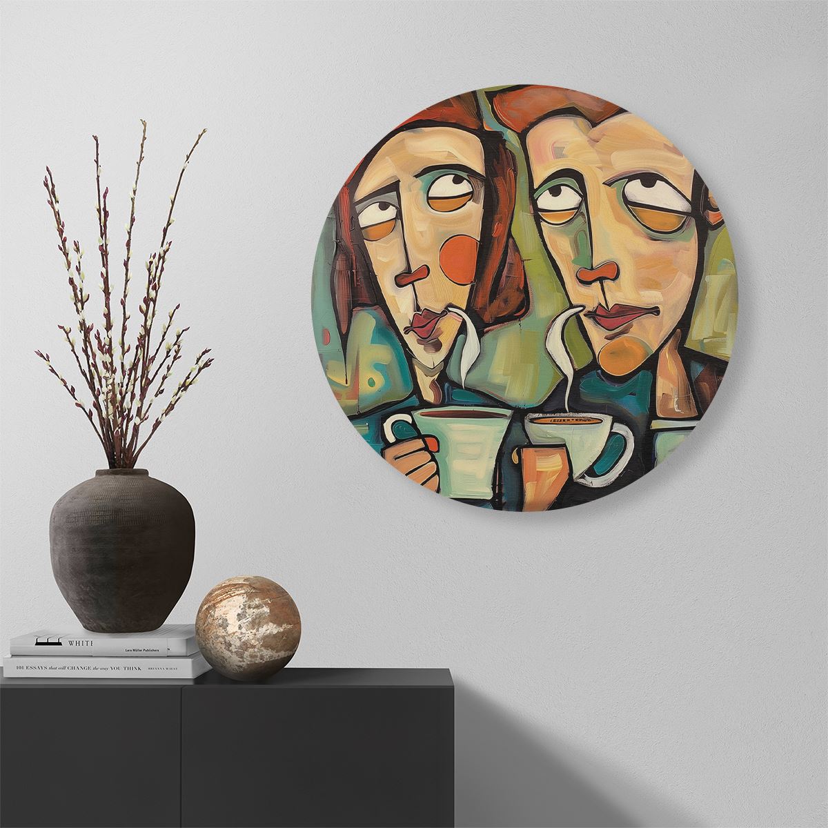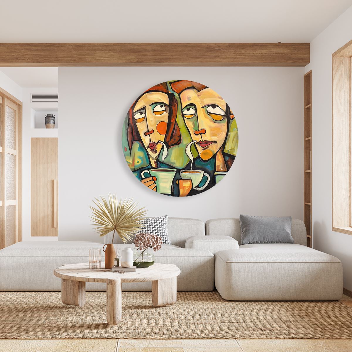 Wandcirkel Twee Mensen die Koffie Drinken