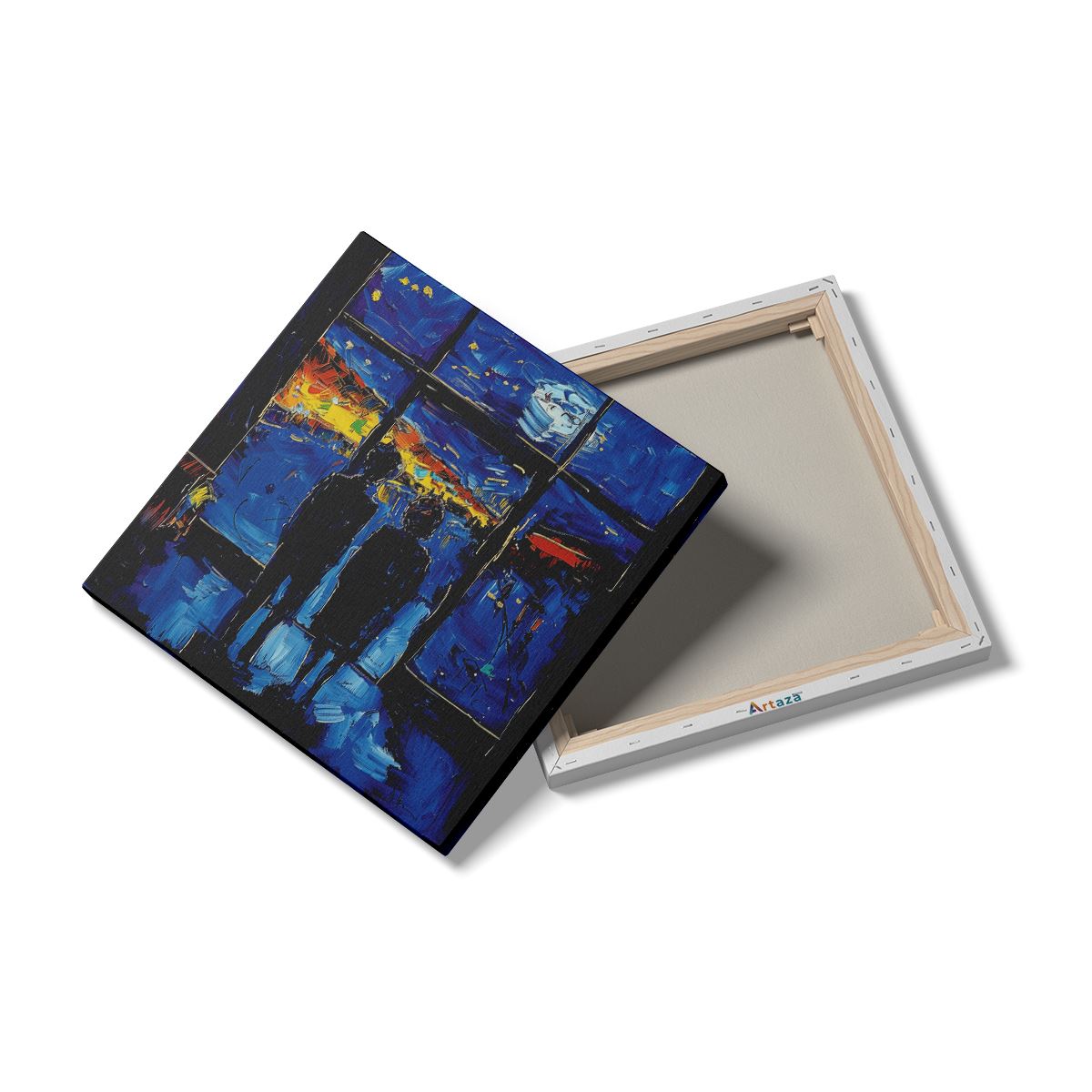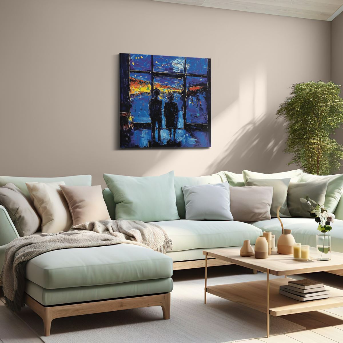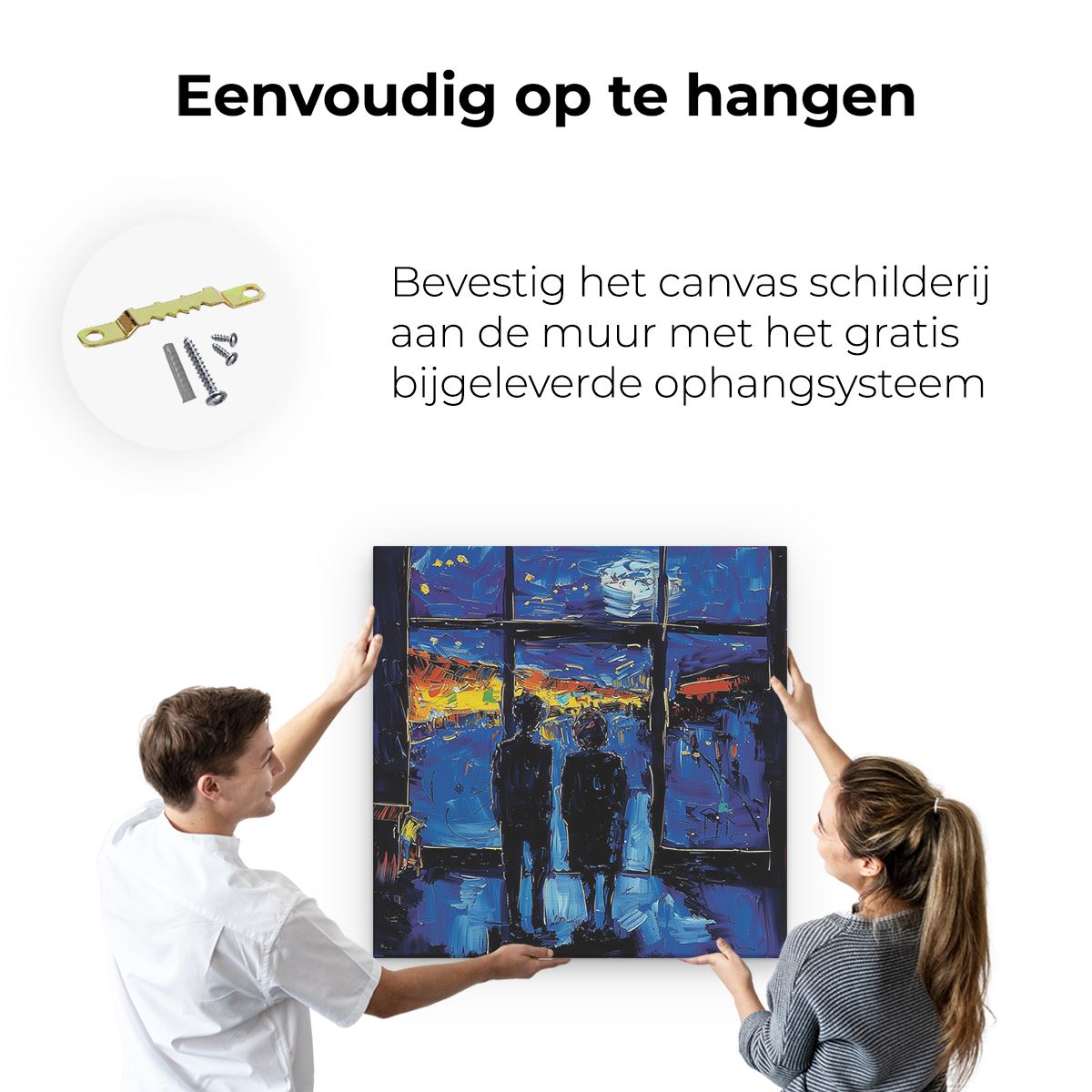 Schilderij Twee Mensen die 's Nachts uit een Raam Kijken