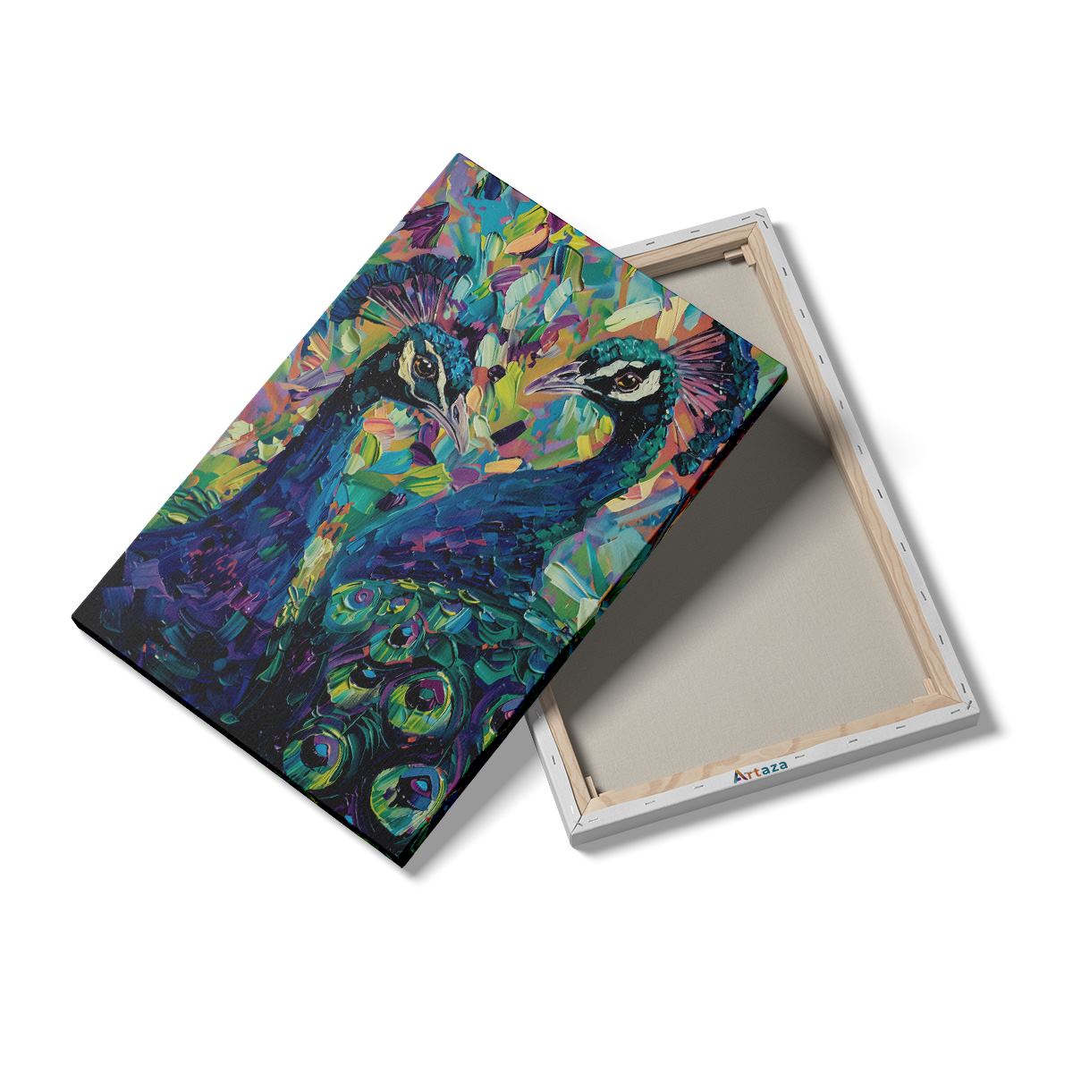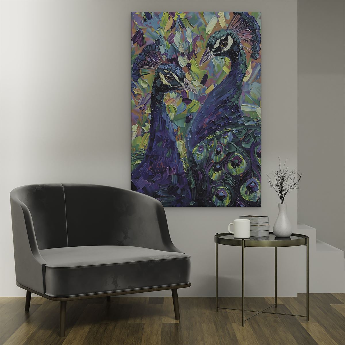 Schilderij Twee Pauwen met Kleurrijke Veren
