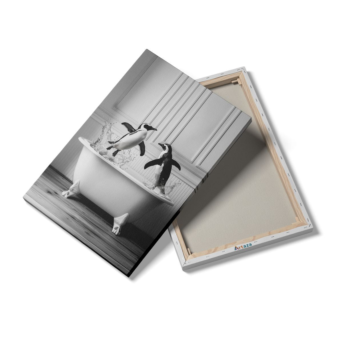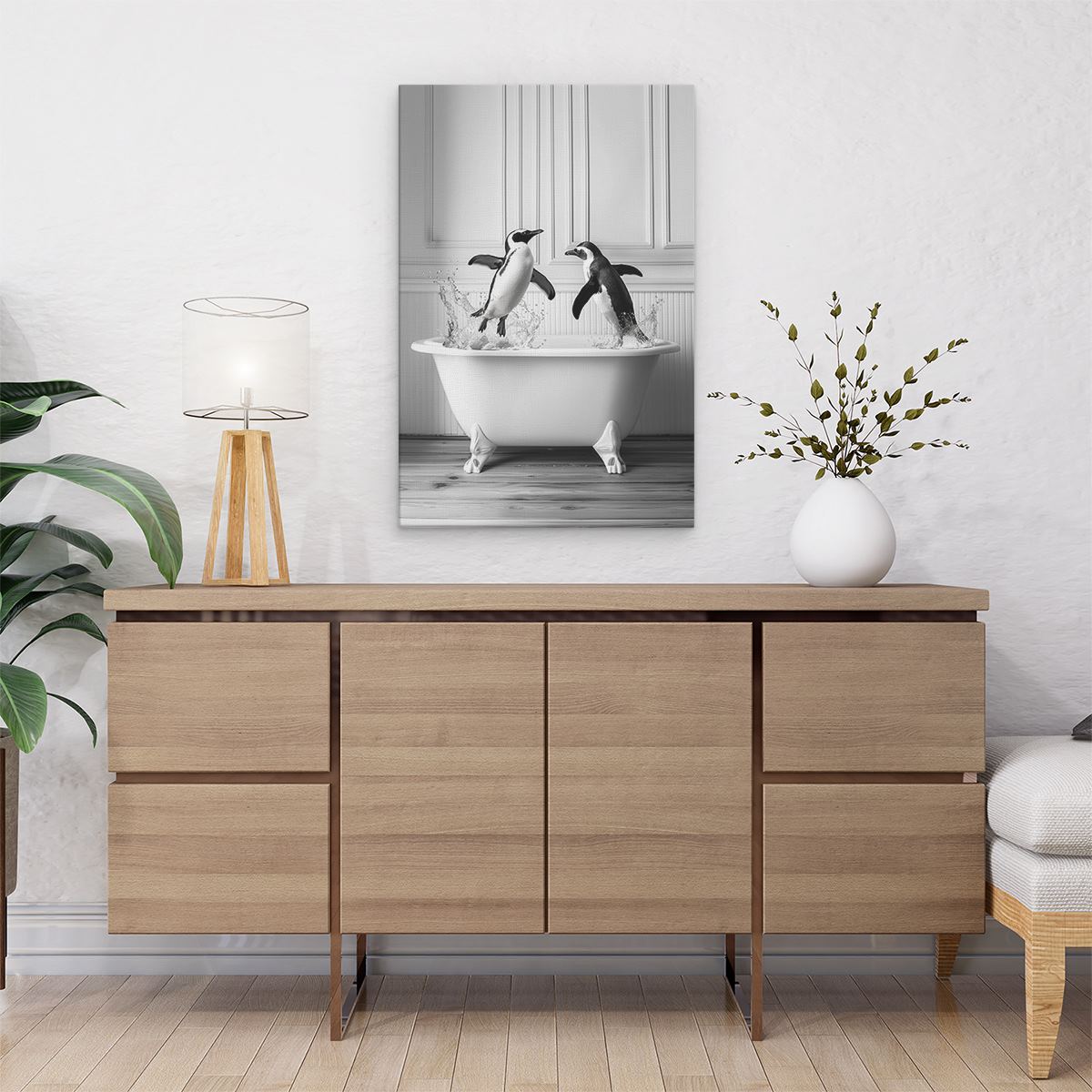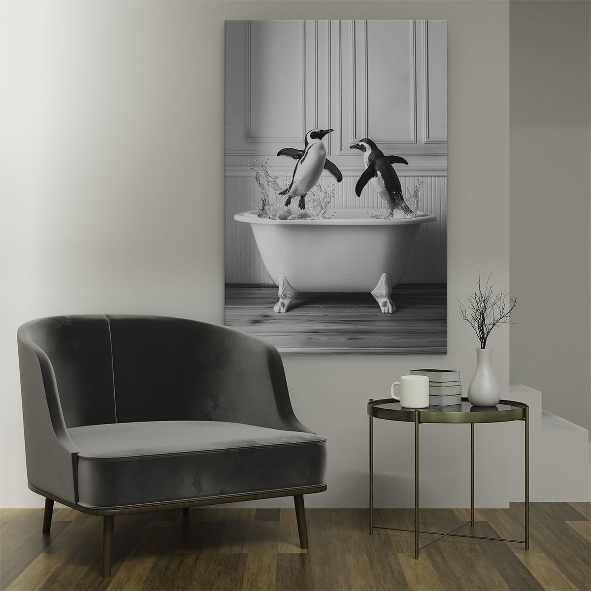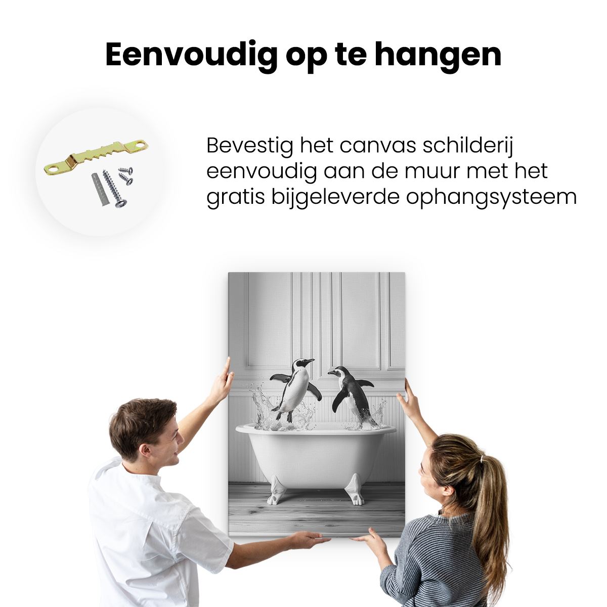 Schilderij Twee Pinguïns die in een Badkuip Springen