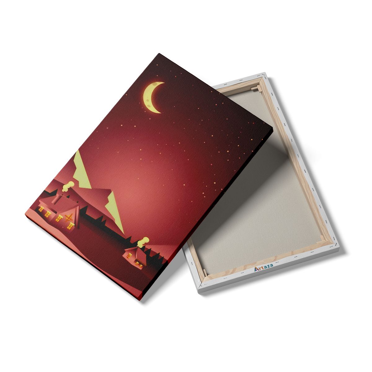 Schilderij Twee Rode Getekende Huisjes met Rook in de Nacht