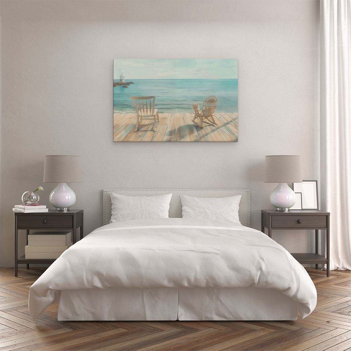 Schilderij Twee Schommelstoelen op een Houten Terras met Uitzicht op de Oceaan