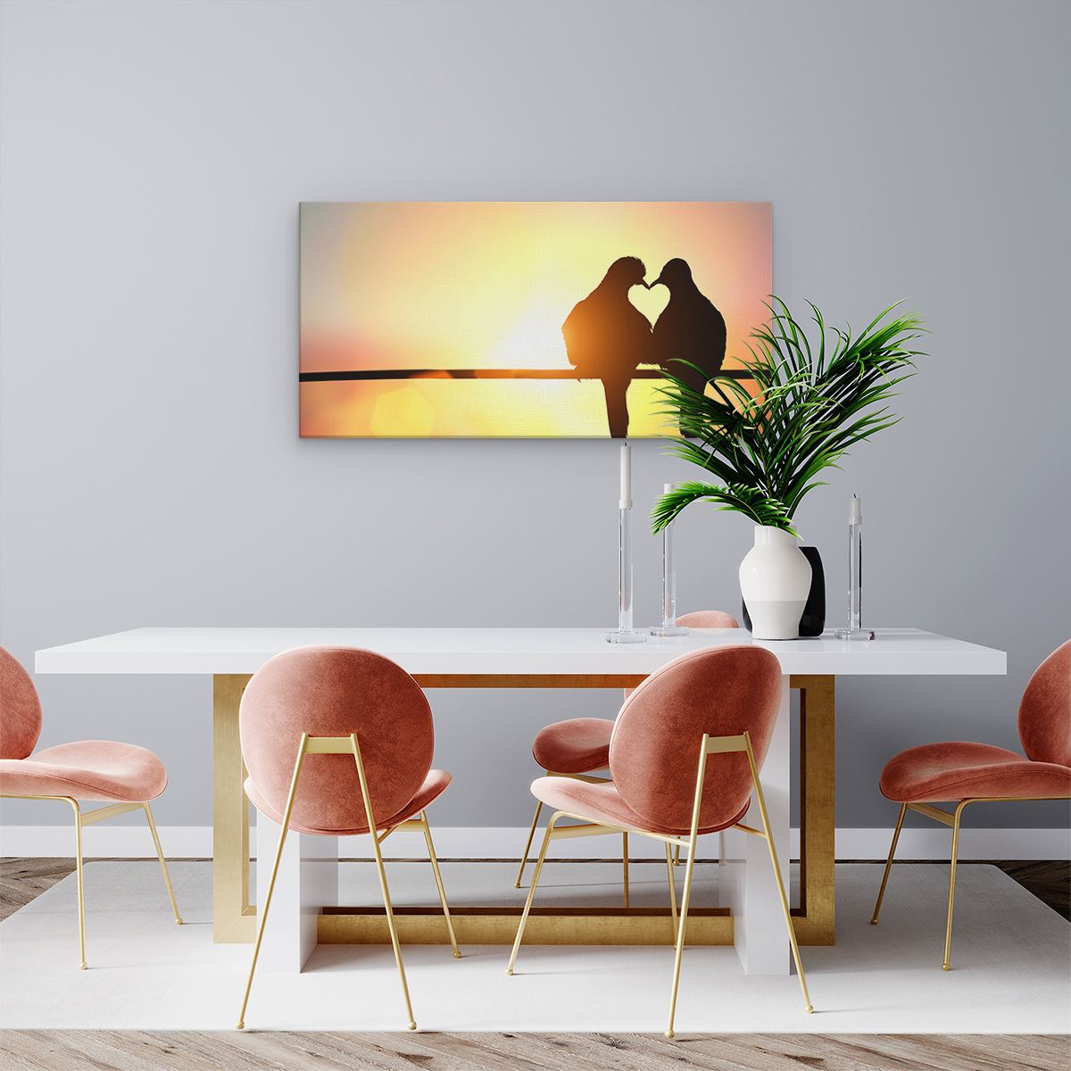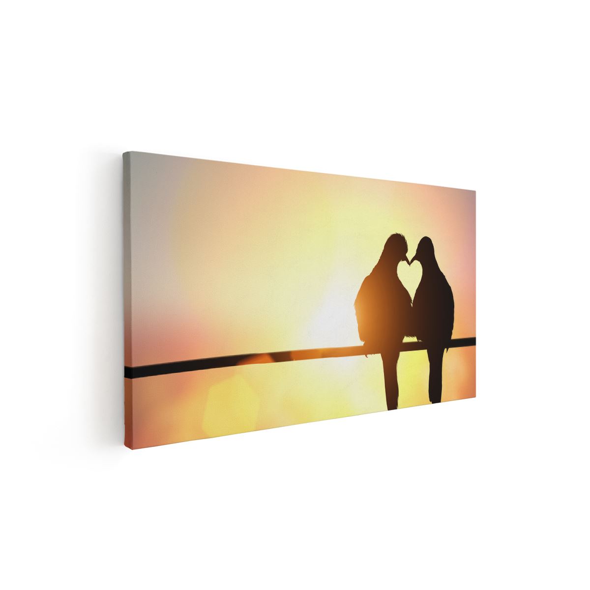 Schilderij Twee Silhouet Vogels In Een Hart Vorm