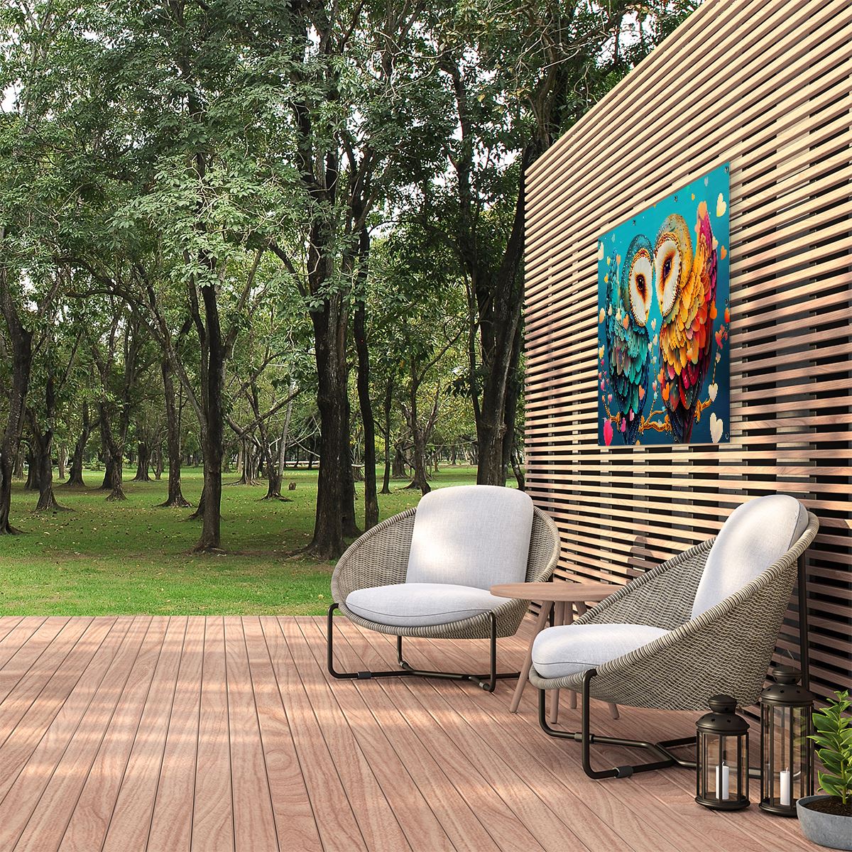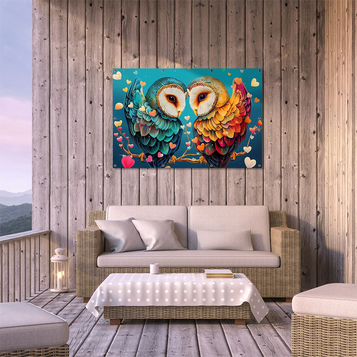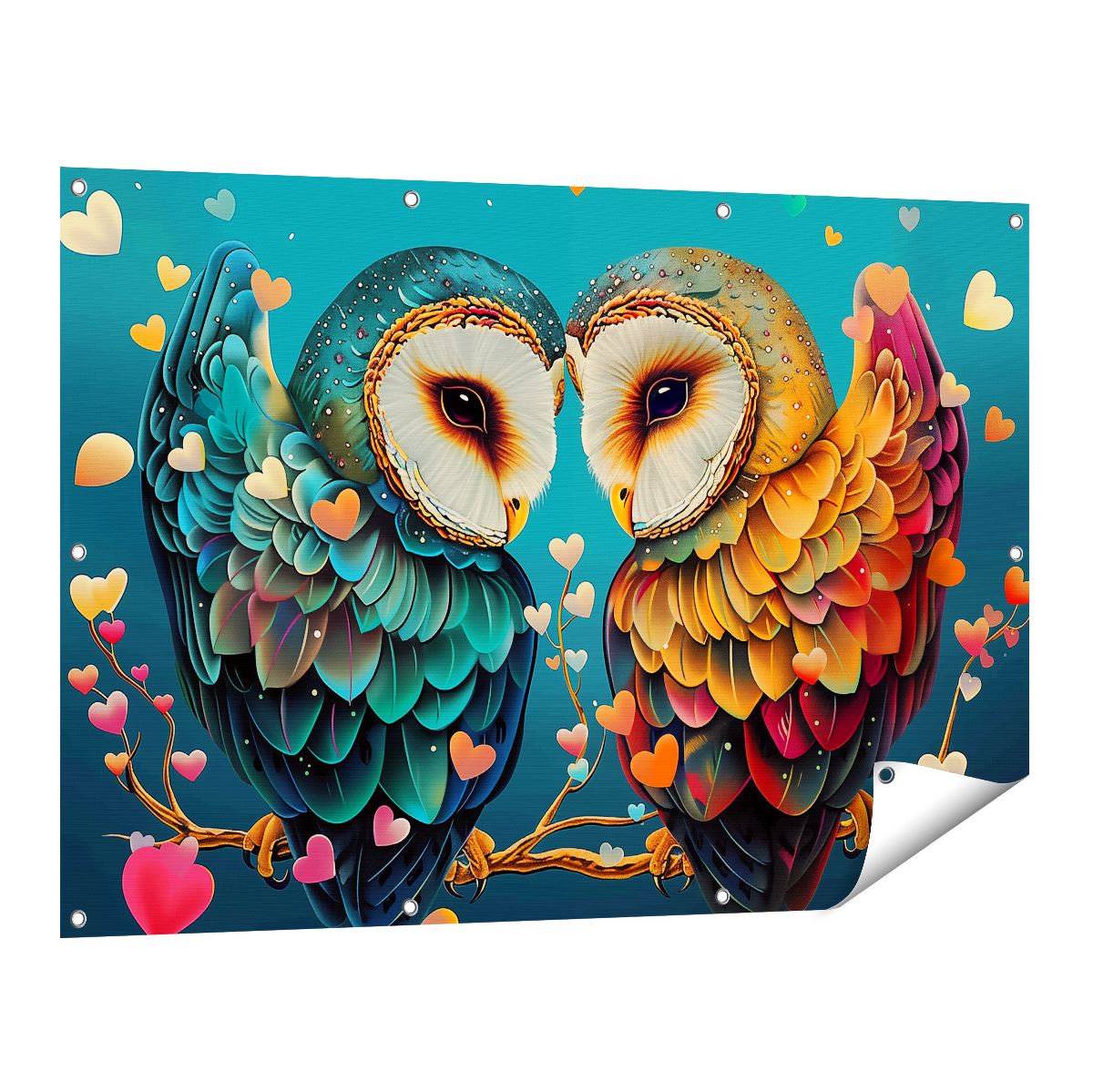 Tuinposter Twee Uilen op een Tak met Hartjes