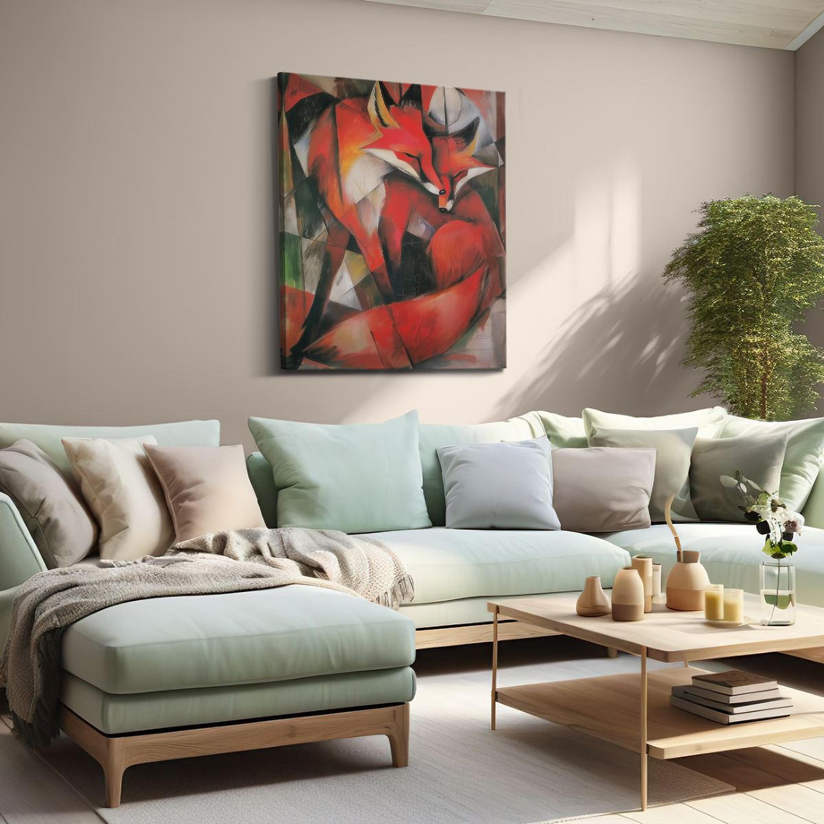 Schilderij Twee Vossen die Elkaar Omhelzen