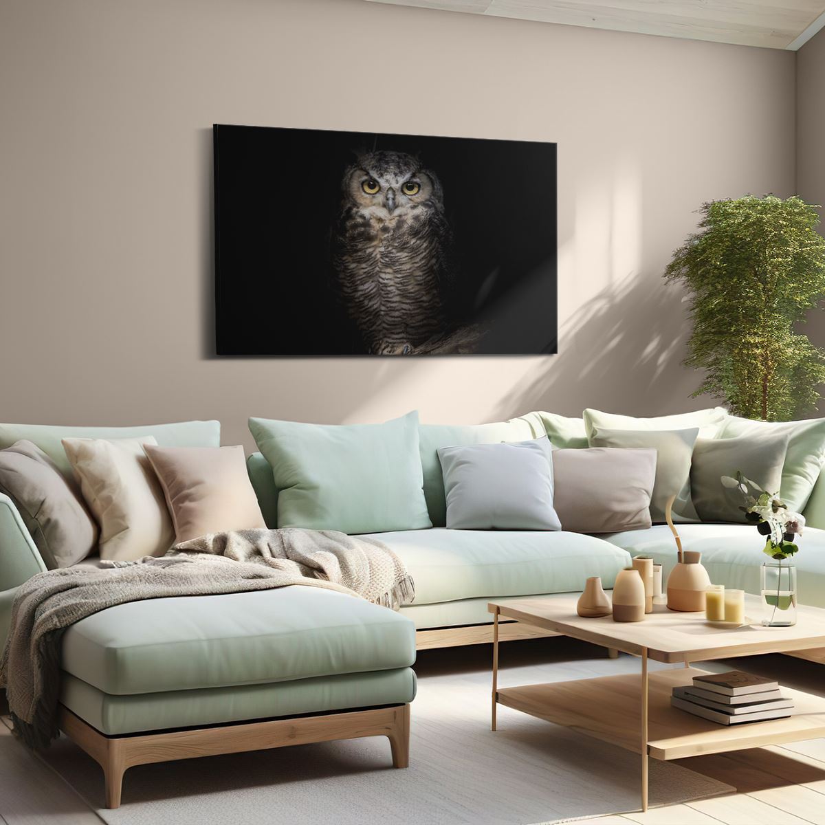 Schilderij Uil Op Een Tak In De Nacht