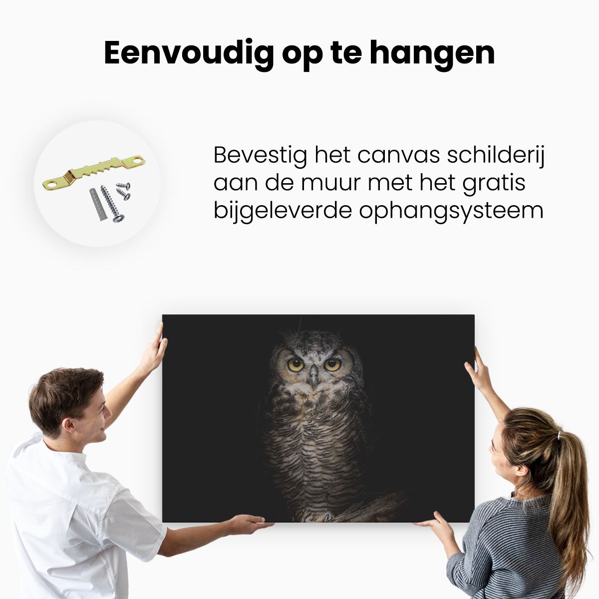 Bij aankoop ontvang je een meegeleverd ophangsysteem, zodat je op een simpele en snelle wijze het schilderij boven de bank of bed kan monteren.