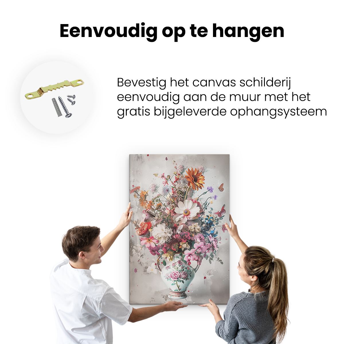 Bij aankoop ontvang je een meegeleverd ophangsysteem, zodat je op een simpele en snelle wijze het schilderij boven de bank of bed kan monteren.