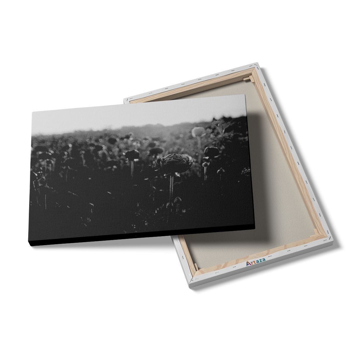 Schilderij Veld met Rode Bloemen - Zwart Wit