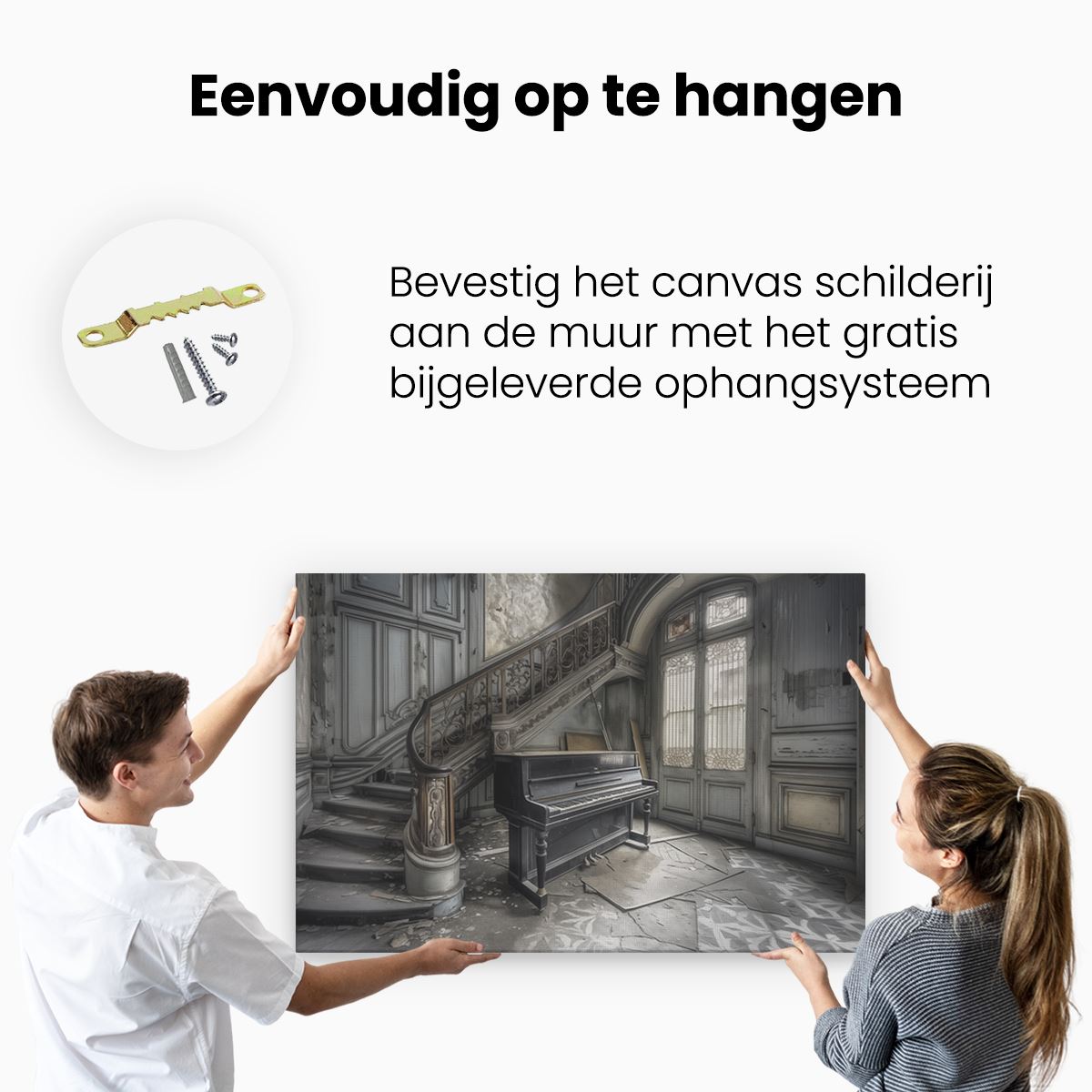 Bij aankoop ontvang je een meegeleverd ophangsysteem, zodat je op een simpele en snelle wijze het schilderij boven de bank of bed kan monteren.