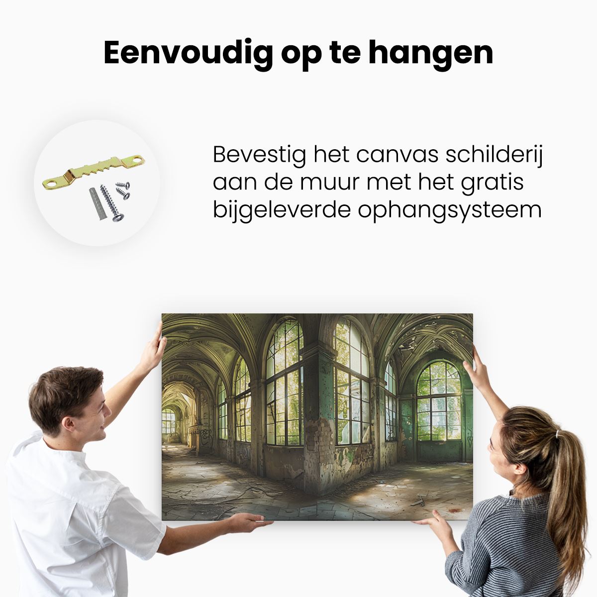 Bij aankoop ontvang je een meegeleverd ophangsysteem, zodat je op een simpele en snelle wijze het schilderij boven de bank of bed kan monteren.