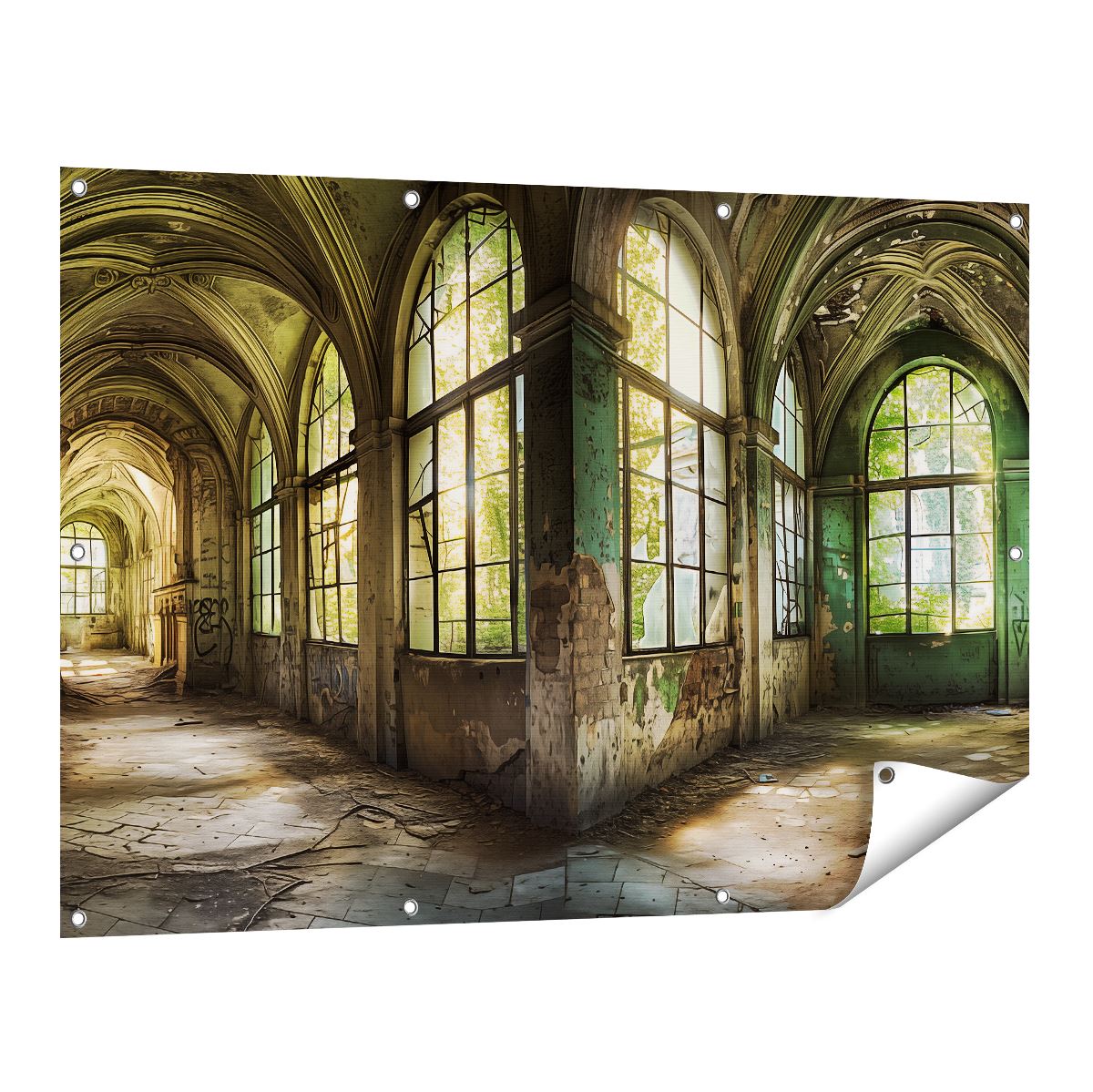 Tuinposter Verlaten Kamer met Ramen