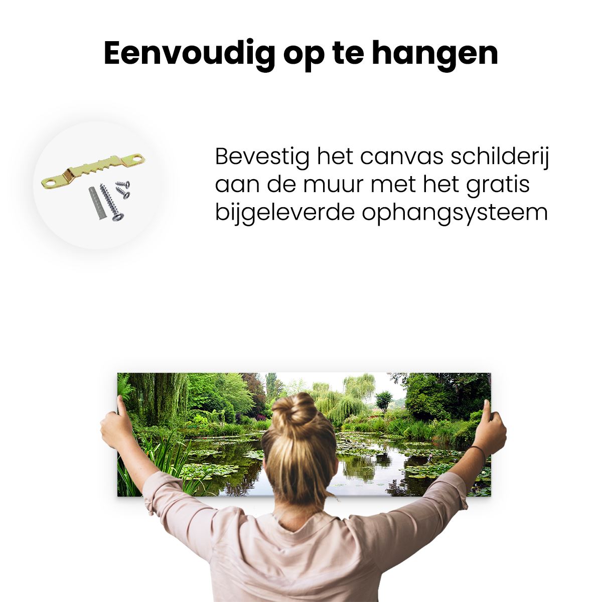 Bij aankoop ontvang je een meegeleverd ophangsysteem, zodat je op een simpele en snelle wijze het schilderij boven de bank of bed kan monteren.