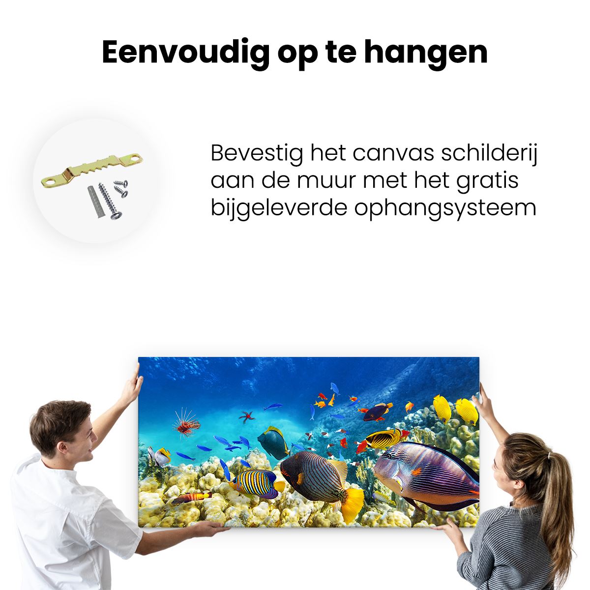 Bij aankoop ontvang je een meegeleverd ophangsysteem, zodat je op een simpele en snelle wijze het schilderij boven de bank of bed kan monteren.