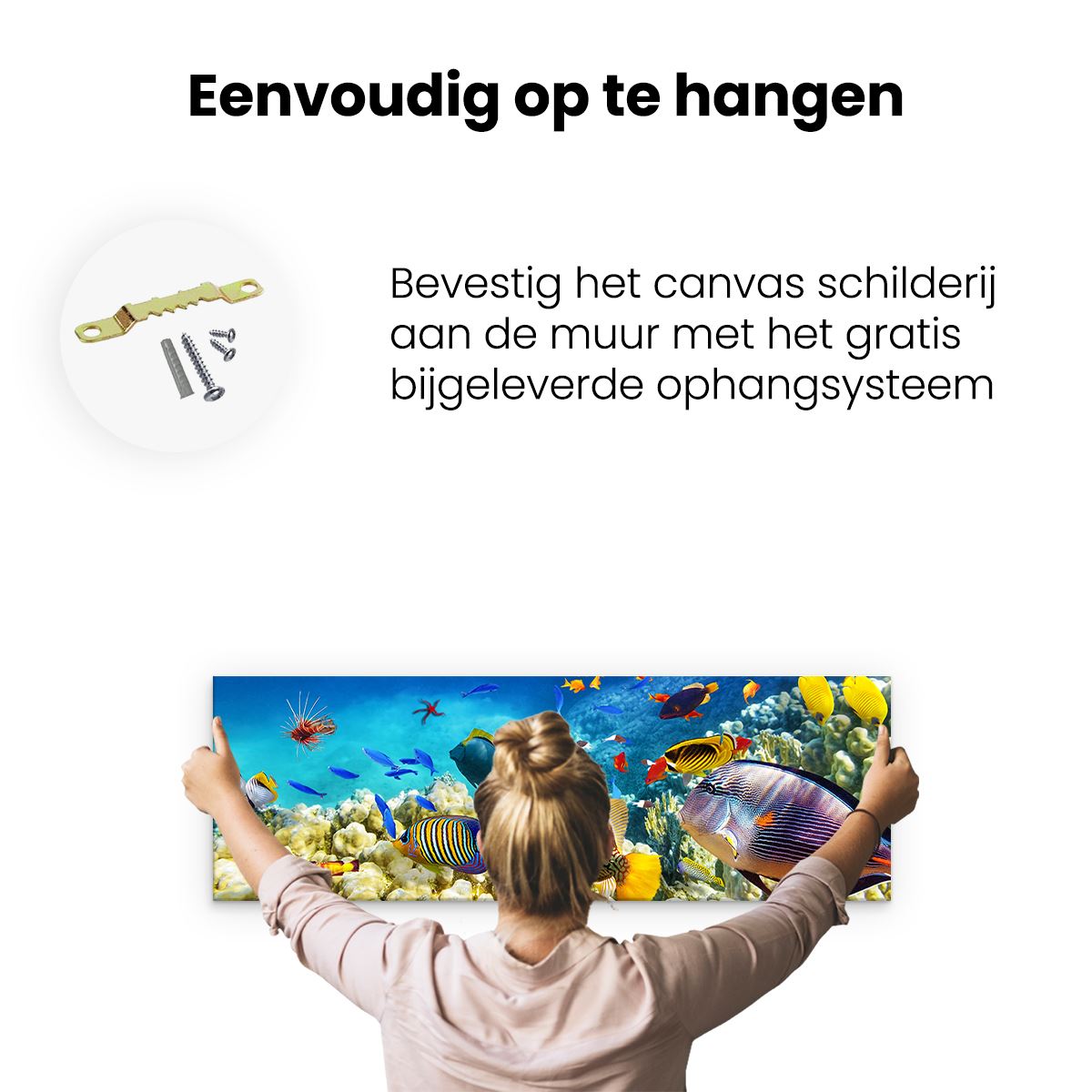 Bij aankoop ontvang je een meegeleverd ophangsysteem, zodat je op een simpele en snelle wijze het schilderij boven de bank of bed kan monteren.