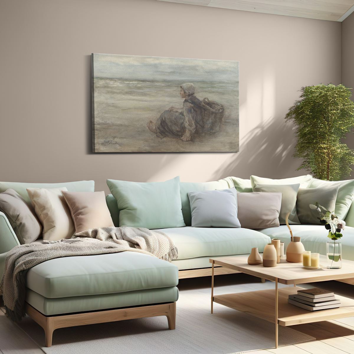 Schilderij Vissersmeisje op het Strand - Jozef Israëls