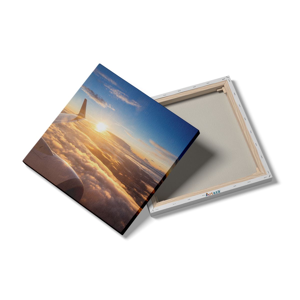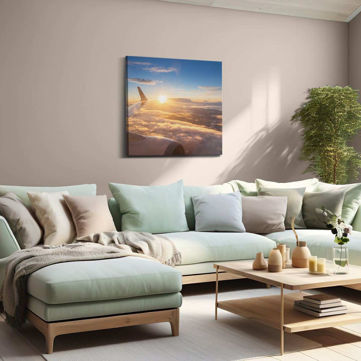 Schilderij Vliegtuig In De Lucht Met De Zon