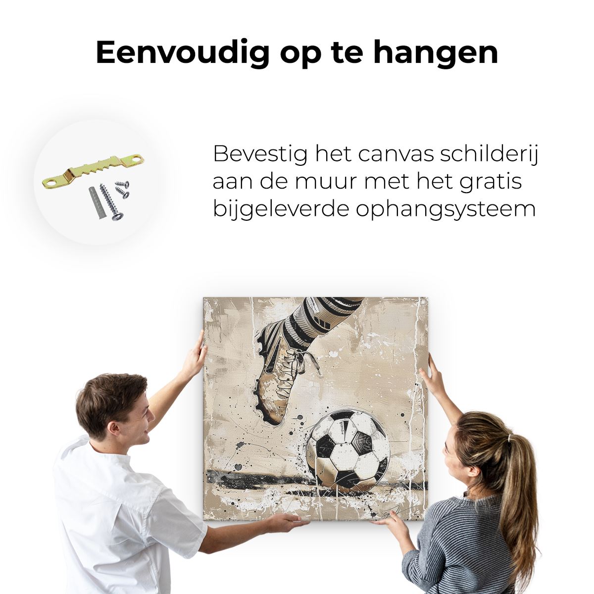 Bij aankoop ontvang je een meegeleverd ophangsysteem, zodat je op een simpele en snelle wijze het schilderij boven de bank of bed kan monteren.