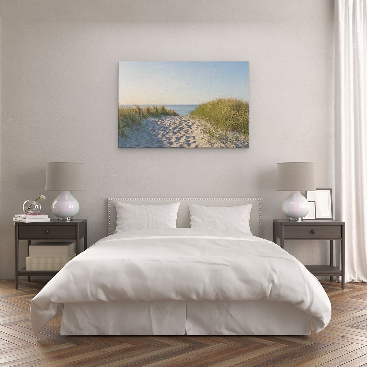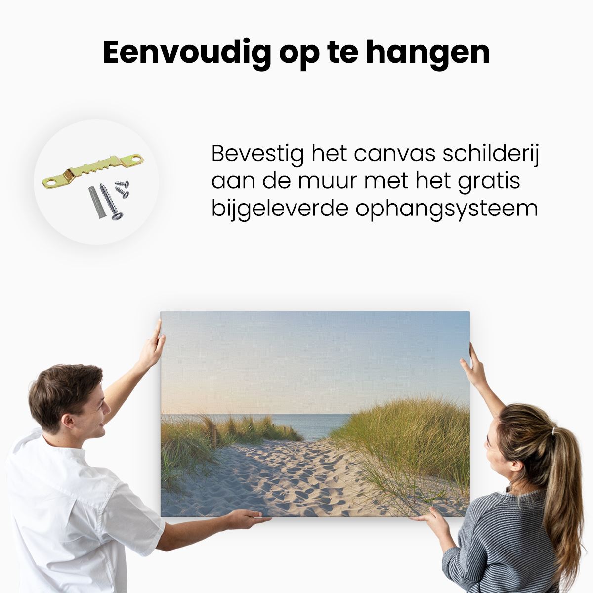 Bij aankoop ontvang je een meegeleverd ophangsysteem, zodat je op een simpele en snelle wijze het schilderij boven de bank of bed kan monteren.