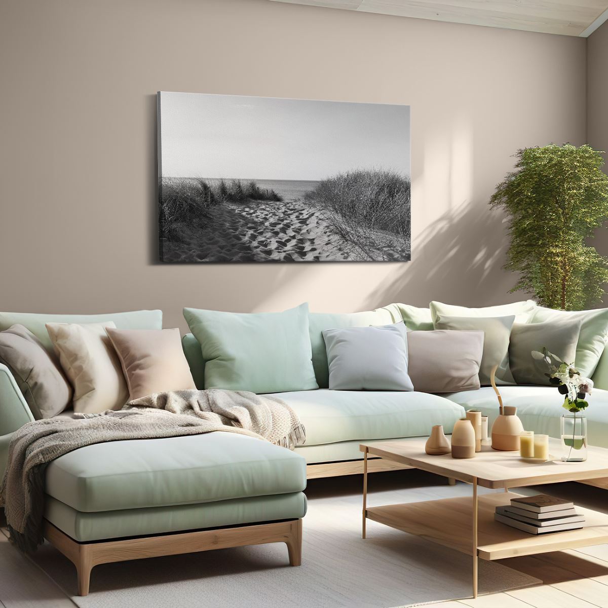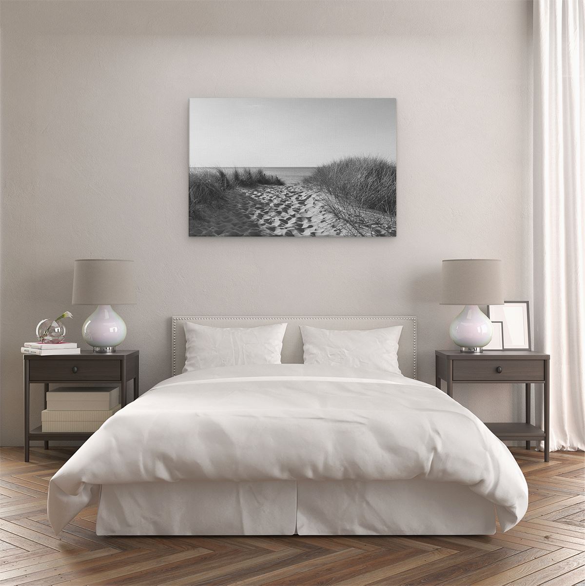 Schilderij Voetpad in de Duinen met Zon - Zwart Wit